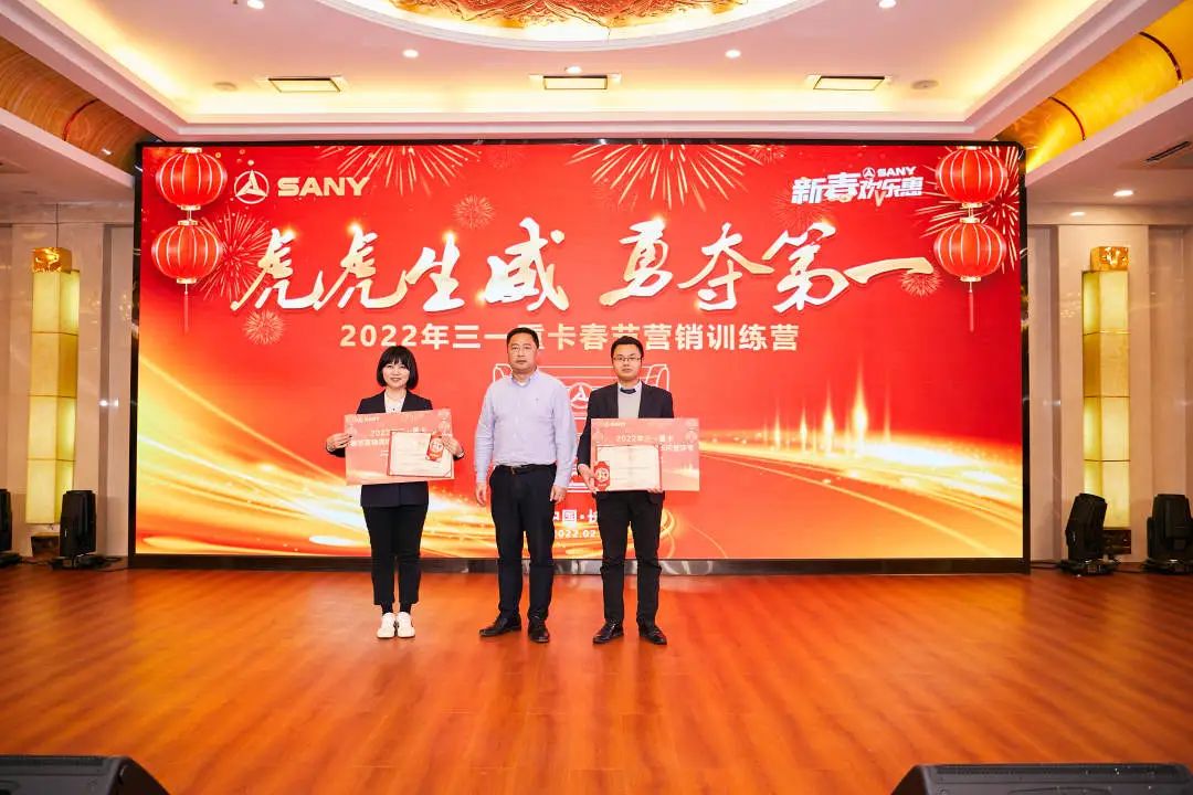 在表彰环节,好体育投注网站集团副总裁、好体育投注网站重卡董事周万春,营销公司总经理刘竹林,电动化营销公司总经理科桦分别为春节营销训练营获得优异成绩的学员颁发证书和奖金。