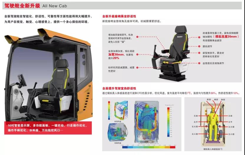 较上代机型效率提升10%以上,油耗降低5%-12%。SY235H HOPE采用川崎电控技术,配合电控主阀、手柄,使用控制器对阀芯精准控制,合理分配能量,进一步减小压损,降低油耗。优化控制程序,提高能量传递效率,进一步降低油耗。