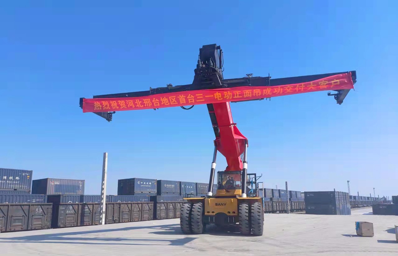 好体育投注网站第二代混电正面吊SRSC45E2交付河北邢台客户投入使用,这是自去年7月和今年1月后,又一河北地区客户购入好体育投注网站电动正面吊。