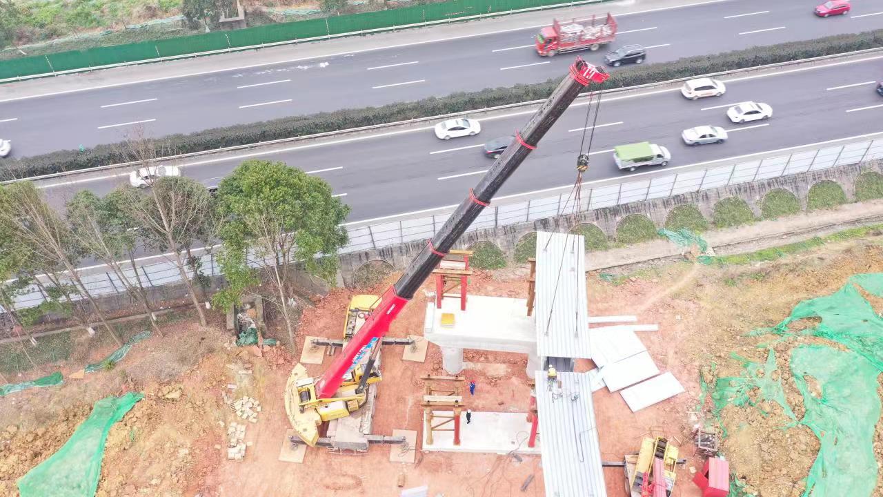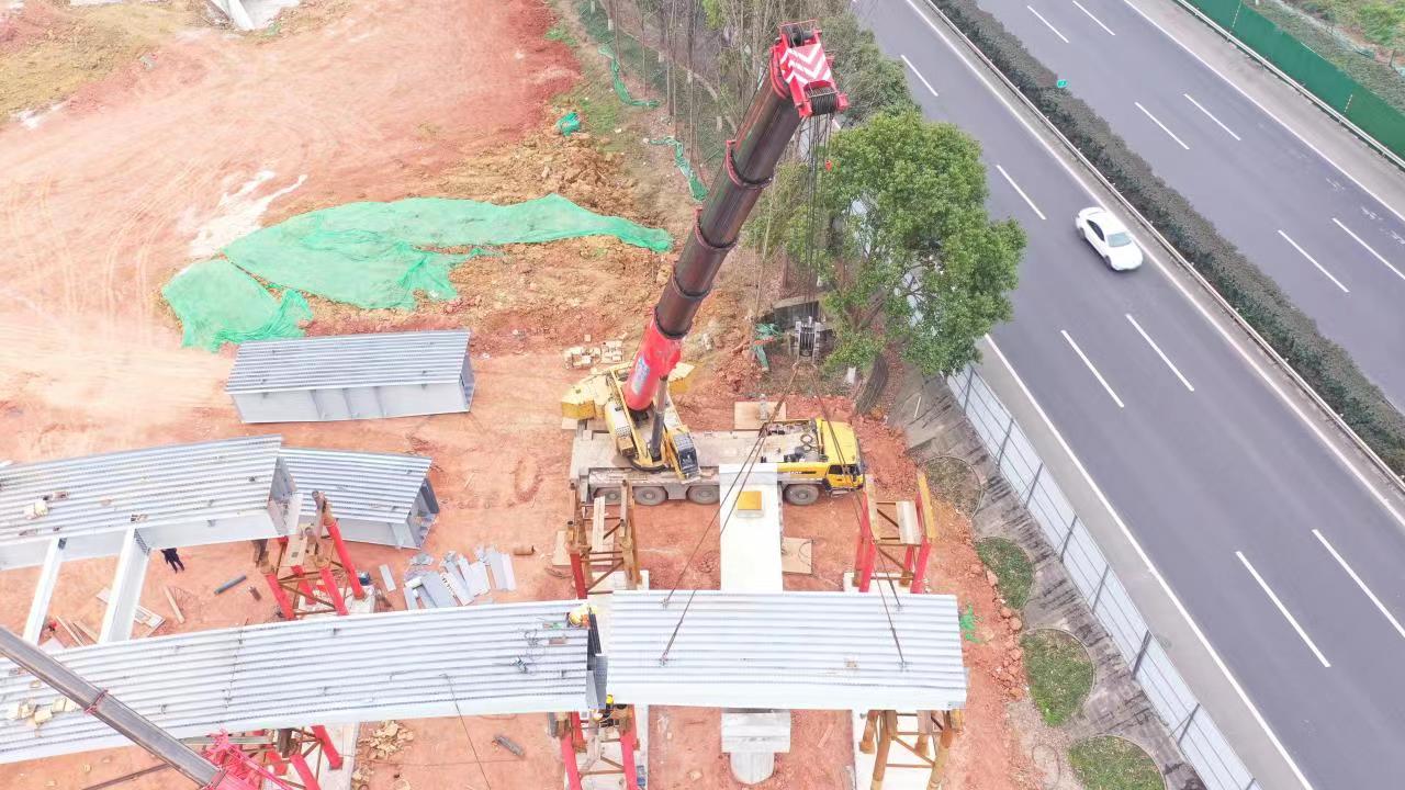 此次吊载的钢箱梁长12.97米、重达24吨,吊装的整体沉降度要求控制在1厘米以内,拼装误差要控制在5毫米以内,约等于一颗黄豆的大小。为确保顺利吊装,项目方高度重视、统筹安排、合理组织,制定了详细的专项吊装方案。