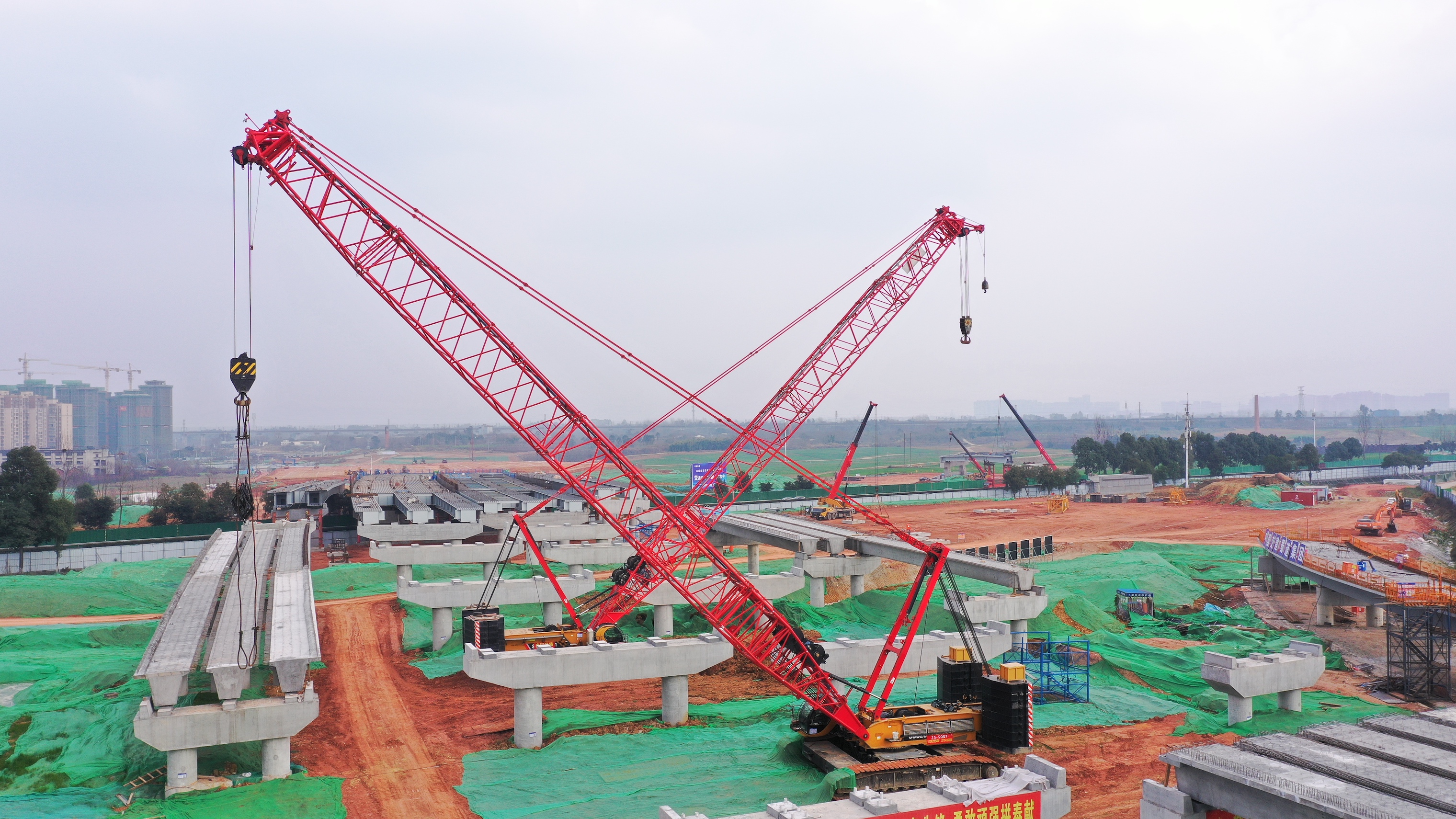 除了SAC2000T,现场还有多台好体育投注网站起重机并肩作战。