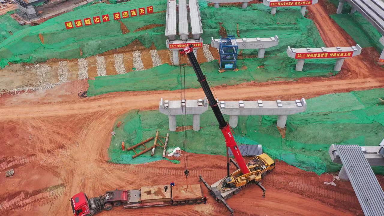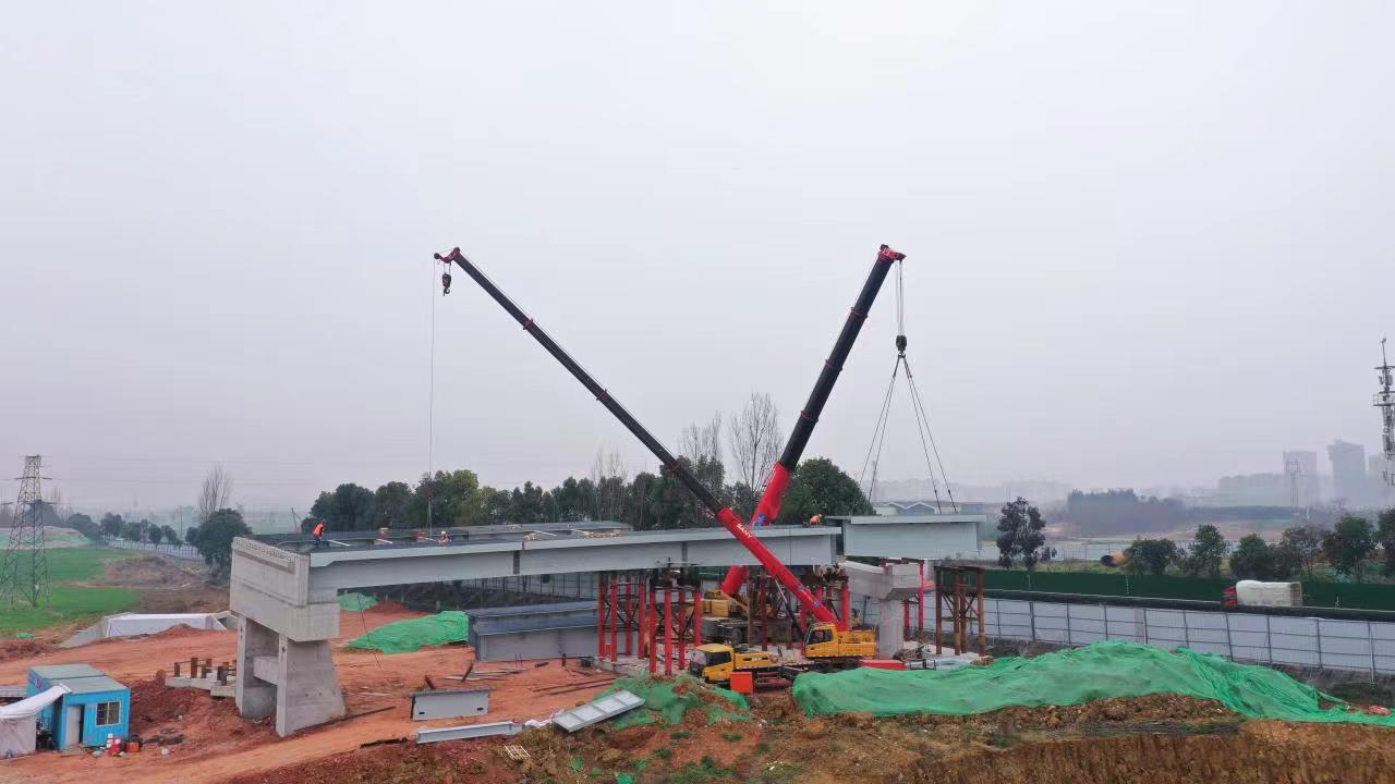 四川永立信建筑安装有限公司的操作手顾强介绍:“实际的操作难度非常大,因为这是一次性整体吊装。以前吊钢箱梁都是单组分体吊装,把一片完整的钢箱梁分成三节吊。而这次的在地面上就已经焊接完成,是一个整体,难度可想而知。