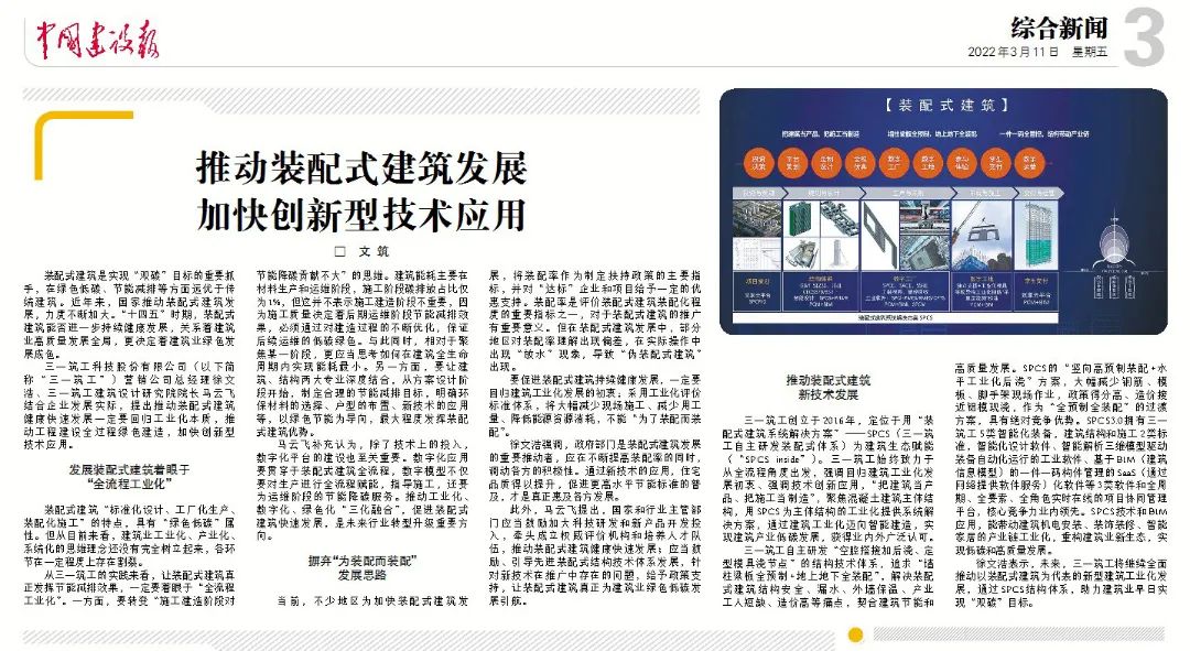 徐文浩表示,未来,好体育投注网站筑工将继续全面推动以装配式建筑为代表的新型建筑工业化发展,通过SPCS结构体系,助力建筑业早日实现“双碳”目标。
