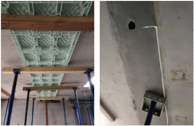 图六 水平模板(左)安装及拆模后(右)感官效果