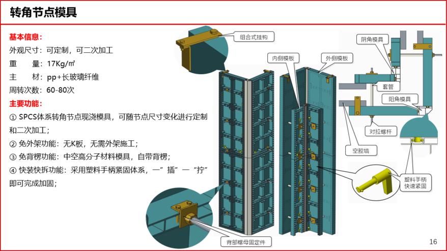 安装速度快:模板专业手柄连接迅速,拆线简单,大大节约劳动成本及材料成本,弥补了一般木模板、膏模板的缺陷,缩短了施工周期。