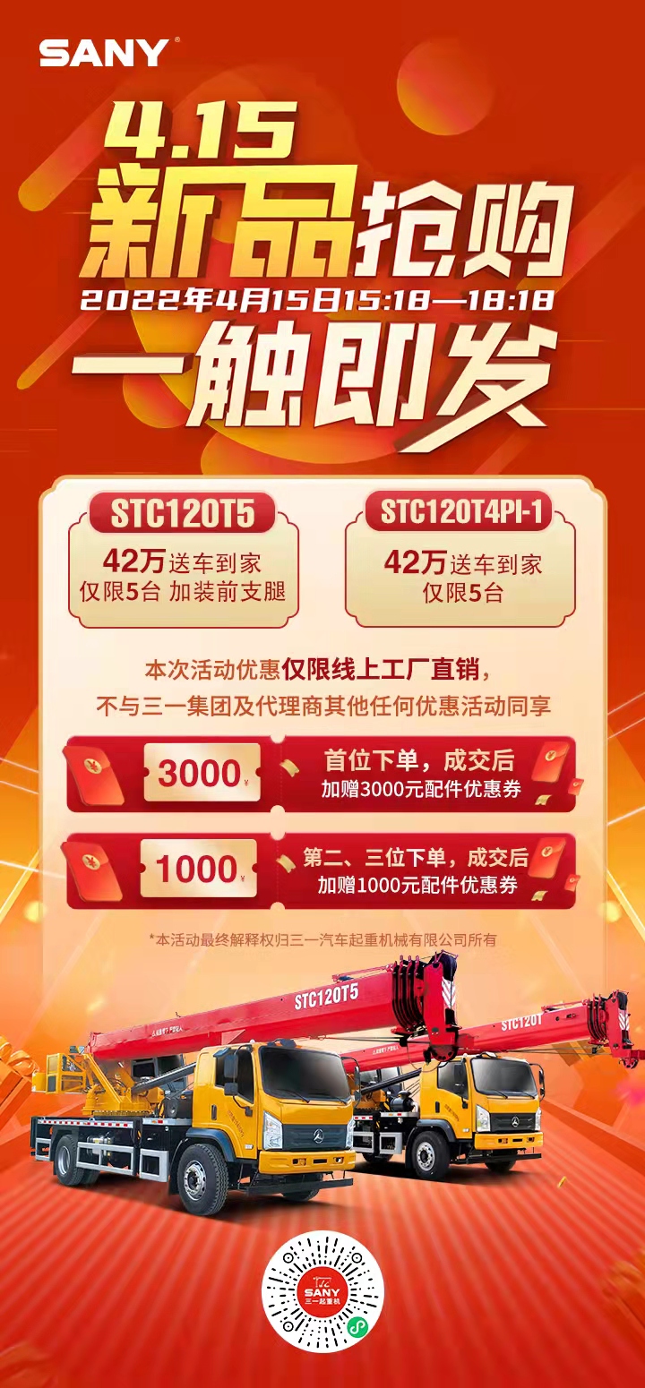 2022年4月15日下午15:18-18:18,好体育投注网站易起购小程序惊喜钜惠。5台STC120T5、5台STC120T混动版限时限量开抢。