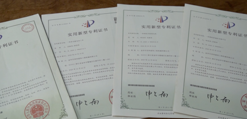 A:这套附墙的专利在2012年被审批通过。当时就有厂家想花100万来买我这个专利,但我没有卖,因为这是我一手做出来的,就像自己的孩子一样,很宝贵。除了这一项,我还有6项专利,其中3项已经完成认证,还有3项在申请中。