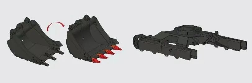 全面升级铲斗和下车架:斗型优化,铲斗挖掘力 30.4kN,斗杆挖掘力 18.2kN,挖掘效率提升8%左右。斗齿由竖销改为横销,效率高,寿命长,更换便捷。