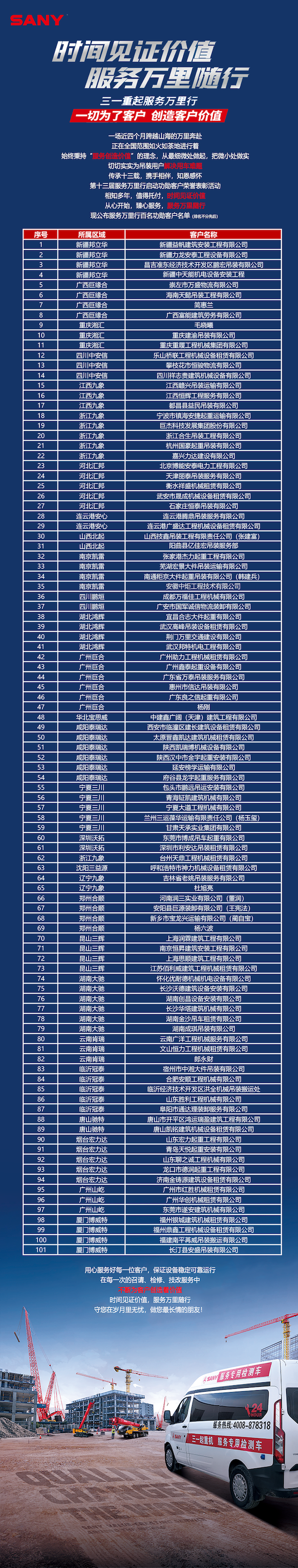 2010年开始,好体育投注网站起重机在全国范围内发起“服务万里行”活动,解决用车难题,为设备保驾护航。这场深入的服务技术交流,得到了吊装用户热烈的回应和支持。携手十三载,知恩感怀,今年的服务万里行正式启动“功勋客户”评选活动,以此感谢各位吊友的认可。