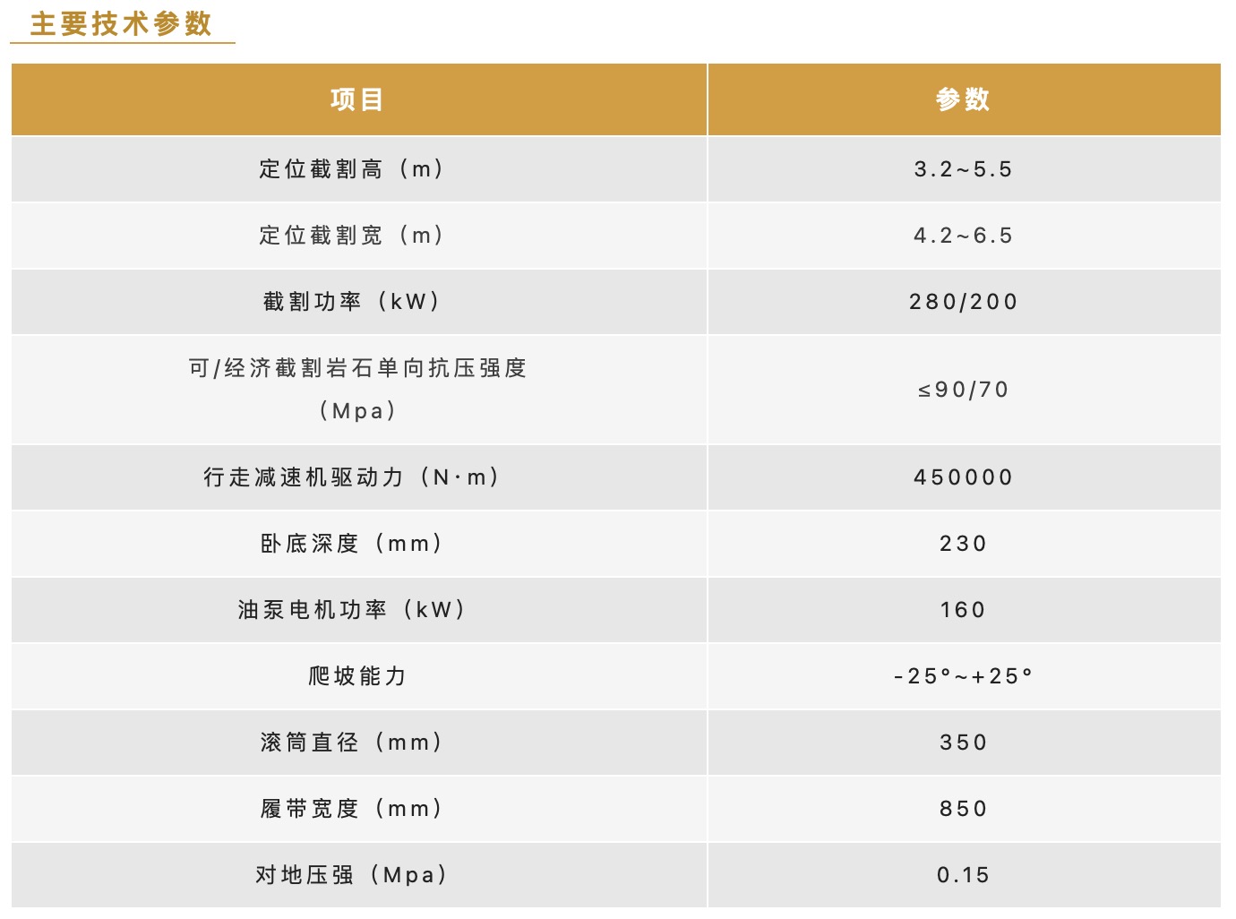 EBZ280D掘进机是好体育投注网站重装全新开发的一款截割功率为280kW的大功率硬岩掘进机,可适用于半煤岩巷道以及全岩大坡度巷道,最大截割岩石硬度可达f9,爬坡能力±25°,适应巷道最大断面35.75㎡。