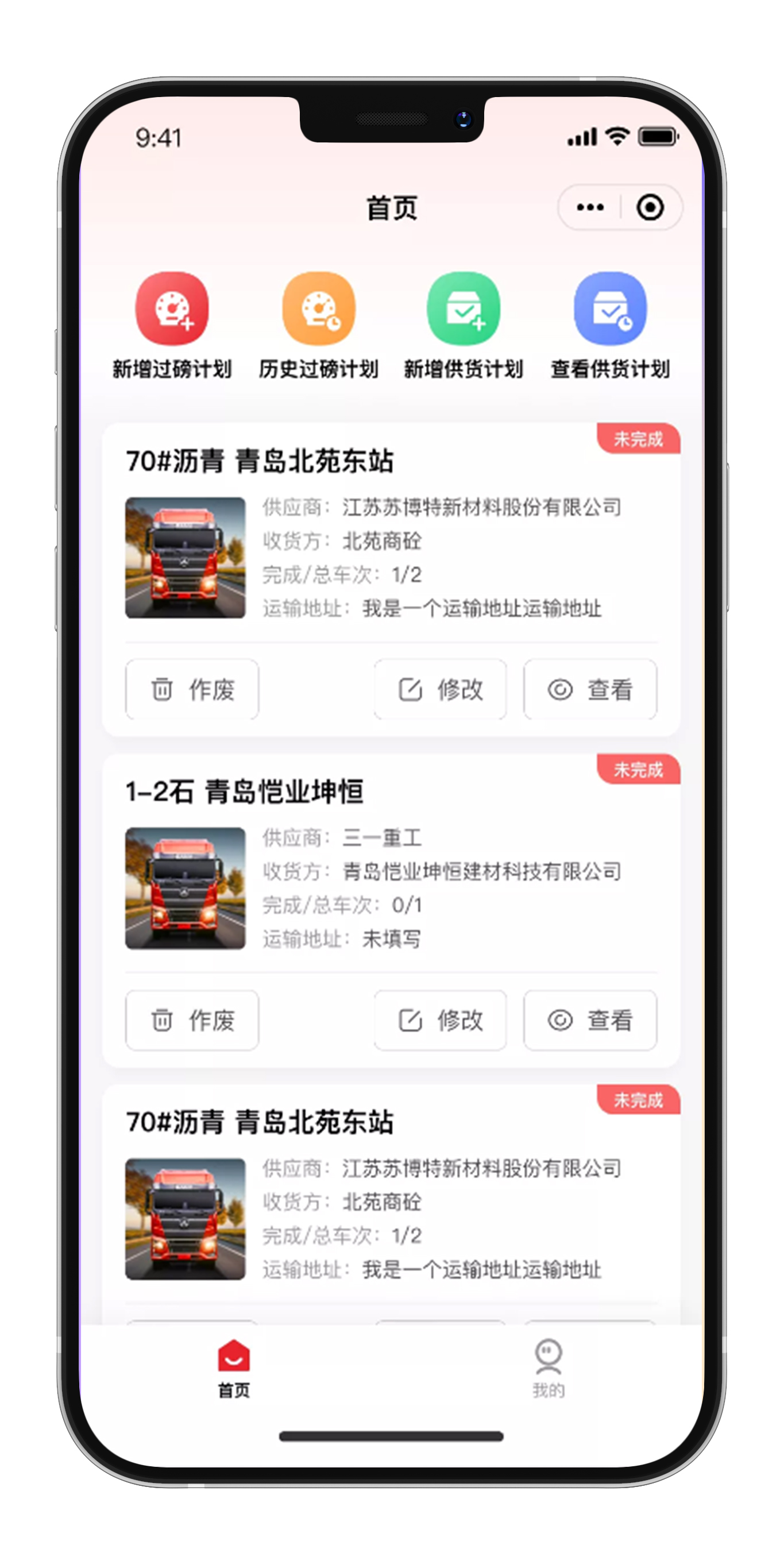 “供”是指供应商端。供应商根据ERP推送的采购计划,使用供应商移动端填写供货计划,合理安排运输车辆,并将供货信息通知给搅拌站、运输司机。使搅拌站能实时掌握供货进度,限制运输车辆随意进场。