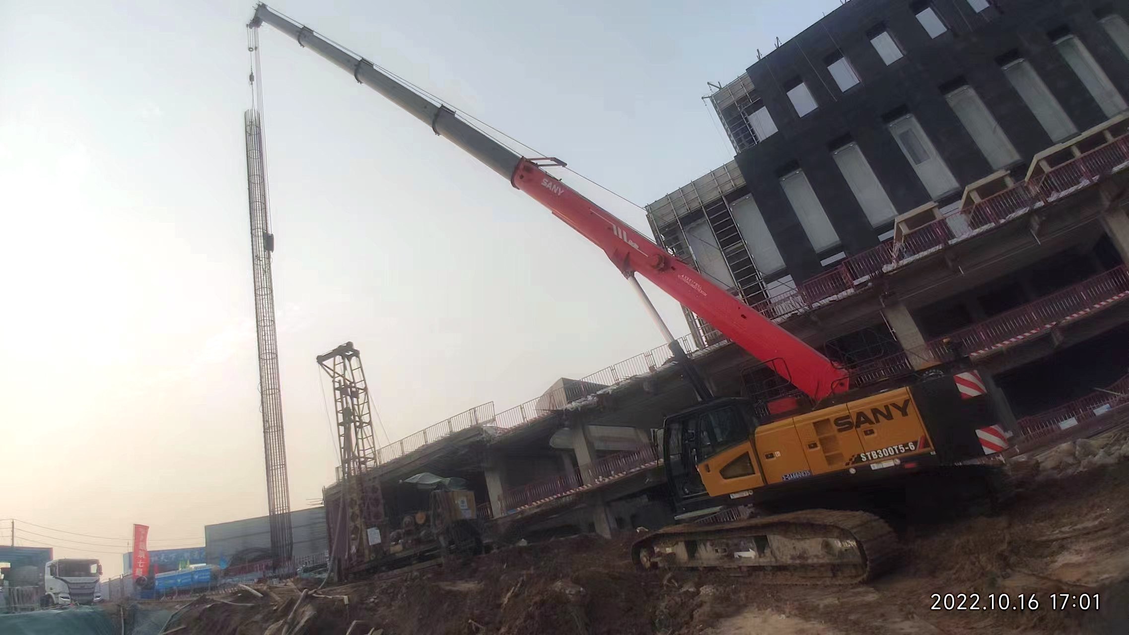 就在赵奎十分苦恼的时候,他在朋友圈看到了一篇文章。文章里讲到,深圳的一个工地在使用伸缩臂履带吊配合旋挖钻施工,效率提升十分显著。于是,赵奎主动去了解了一番,抱着试试看的心态,他采购了一台STB300T5-6,并立即投入到项目中。