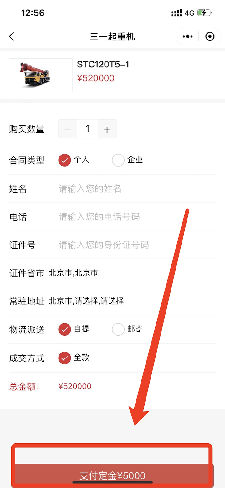 第三步:快速填写好个人/公司信息,确认无误后支付定金。