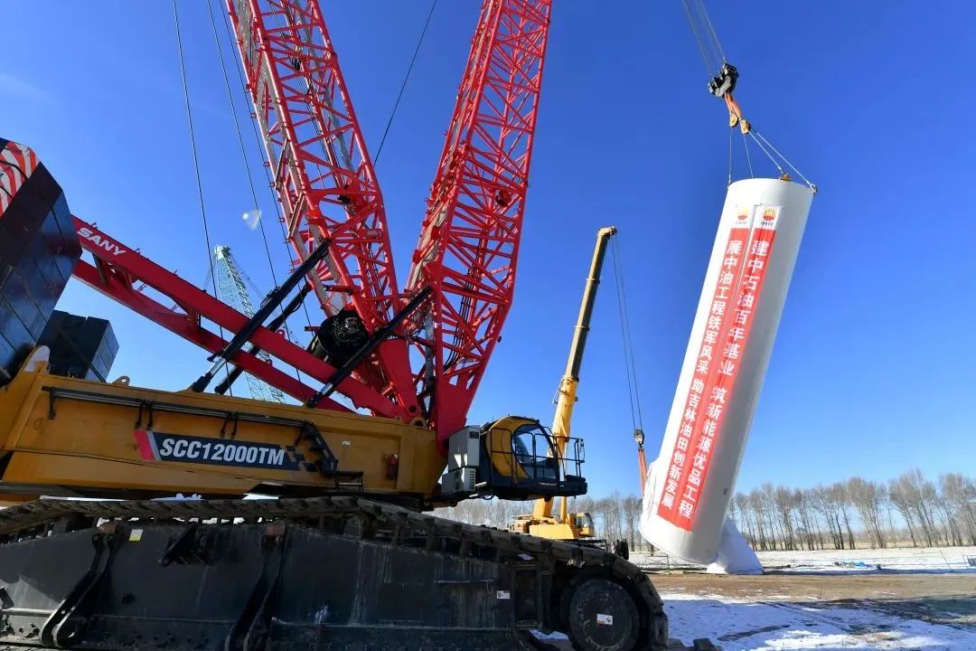 近日,在吉林油田乾情风场3号机组施工现场,第一节重达84吨,直径5.2米,高22米的塔筒徐徐升起,中石油首个风电项目首台风机顺利开吊,好体育投注网站SCC12000TM(SCC8000A)履带起重机担任主吊。这标志着吉林油田从传统石油行业向新能源融合发展迈出了崭新的一步。