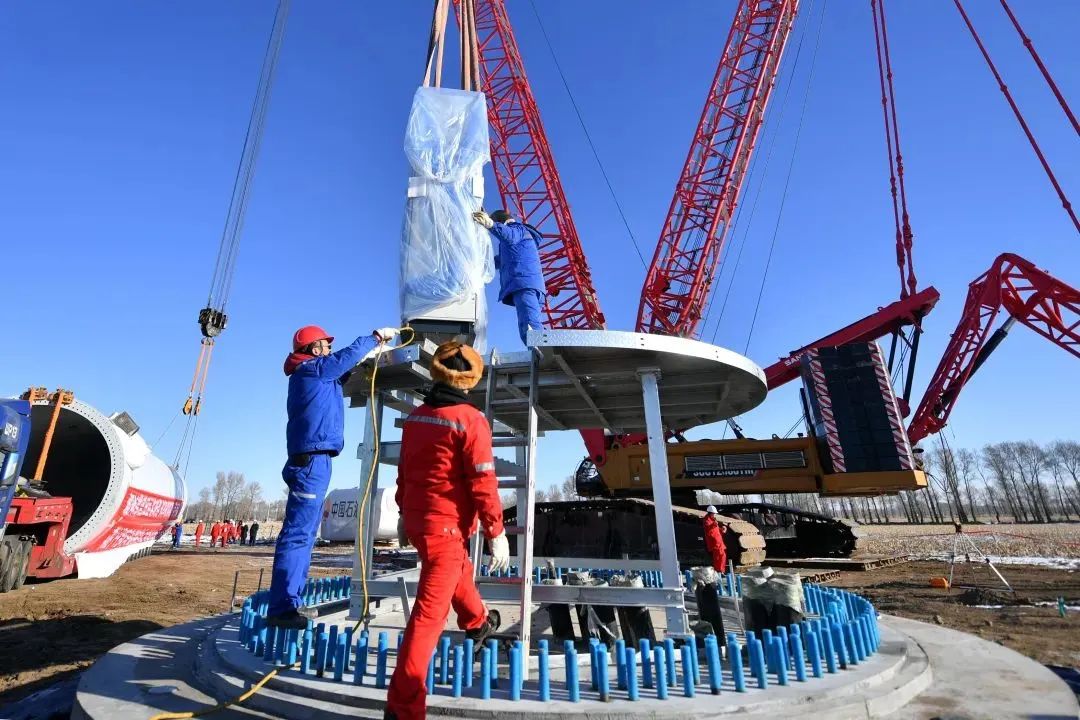 据了解,除了风机安装,该项目的升压站、高压线路、通讯系统等配套设施建设正按计划紧锣密鼓推进,预计年末可并网发电。届时,吉林油田电力自消纳清洁替代将取得实质性进展。