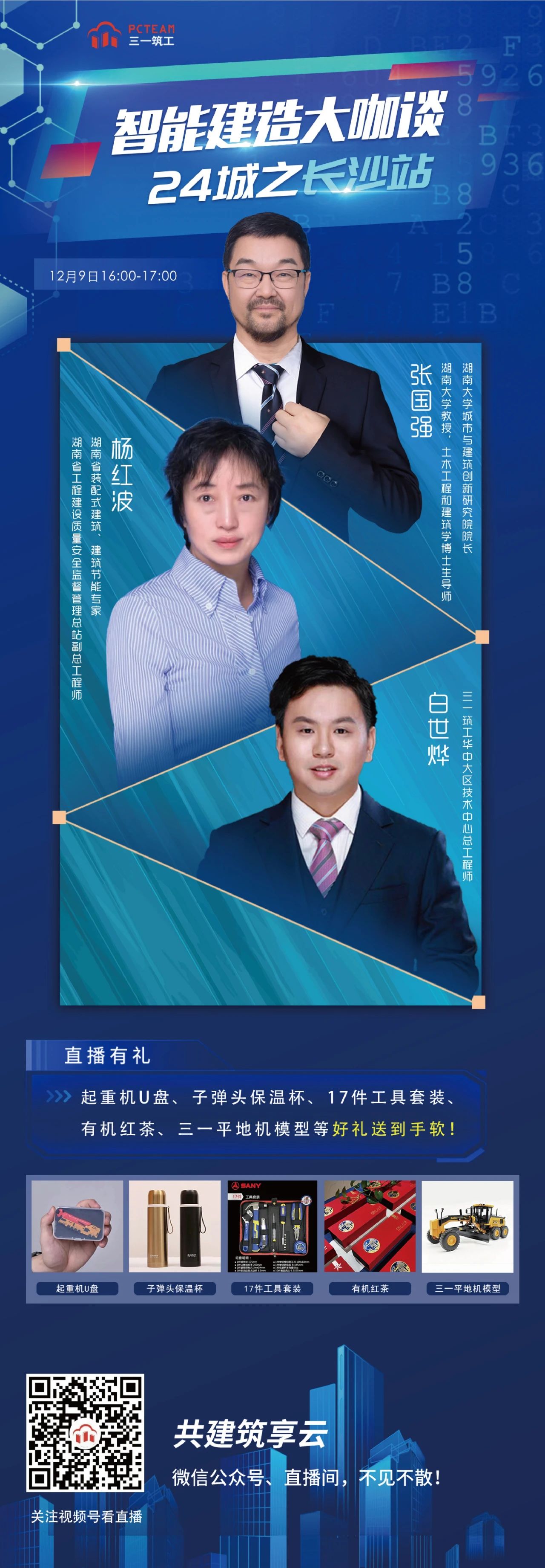 12月9日,本周五16:00,湖南大学教授、土木工程和建筑学博士生导师、城市与建筑创新研究院院长张国强;湖南省工程建设质量安全监督管理总站副总工程师、装配式建筑、建筑节能专家杨红波;好体育投注网站筑工华中大区技术中心总工程师白世烨亮相直播间,带来第33期共话“智能建造”——智能建造大咖谈:24城之长沙站!