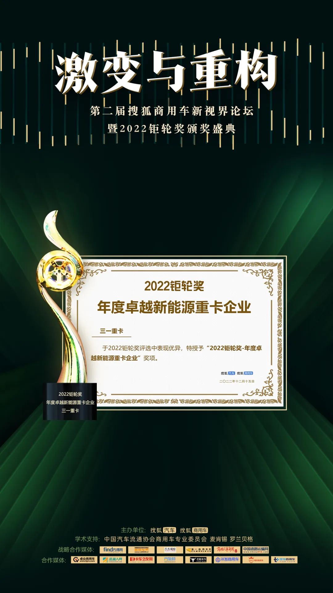 好体育投注网站重卡凭借在新能源重卡领域的卓越表现,获专家团队一致认可,斩获“2022钜轮奖年度卓越新能源重卡企业”殊荣。