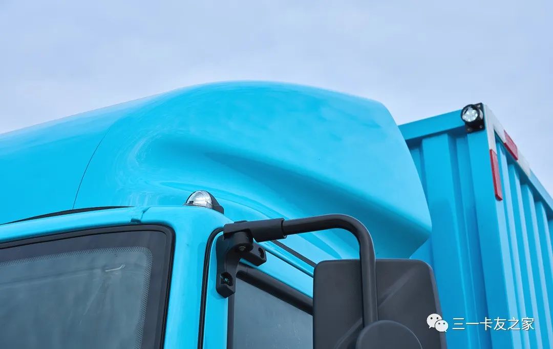 江山电动轻卡采用全新设计流线型导流罩,重量轻、强度高,基于空气动力学多轮结构优化,风阻系数比同类产品更低6%,在行车过程中大大降低风阻和电耗,提高车辆运营的经济性。