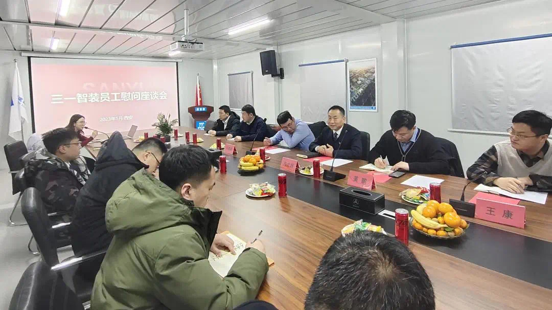2023年1月16日,重装事业部人力资源本部本监姜鹏先生一行代表公司对西安产业园项目现场办公员工进行了慰问座谈活动。