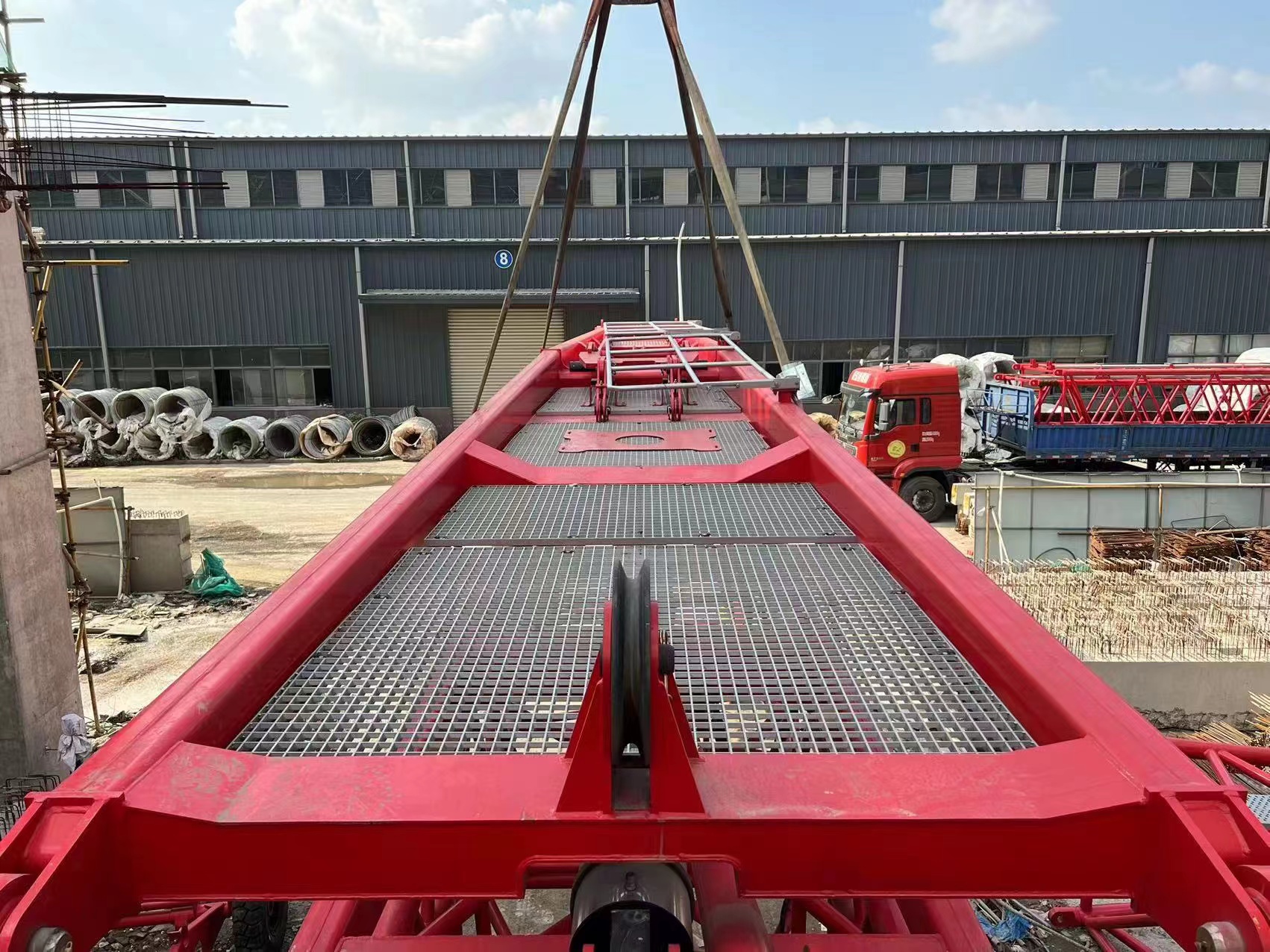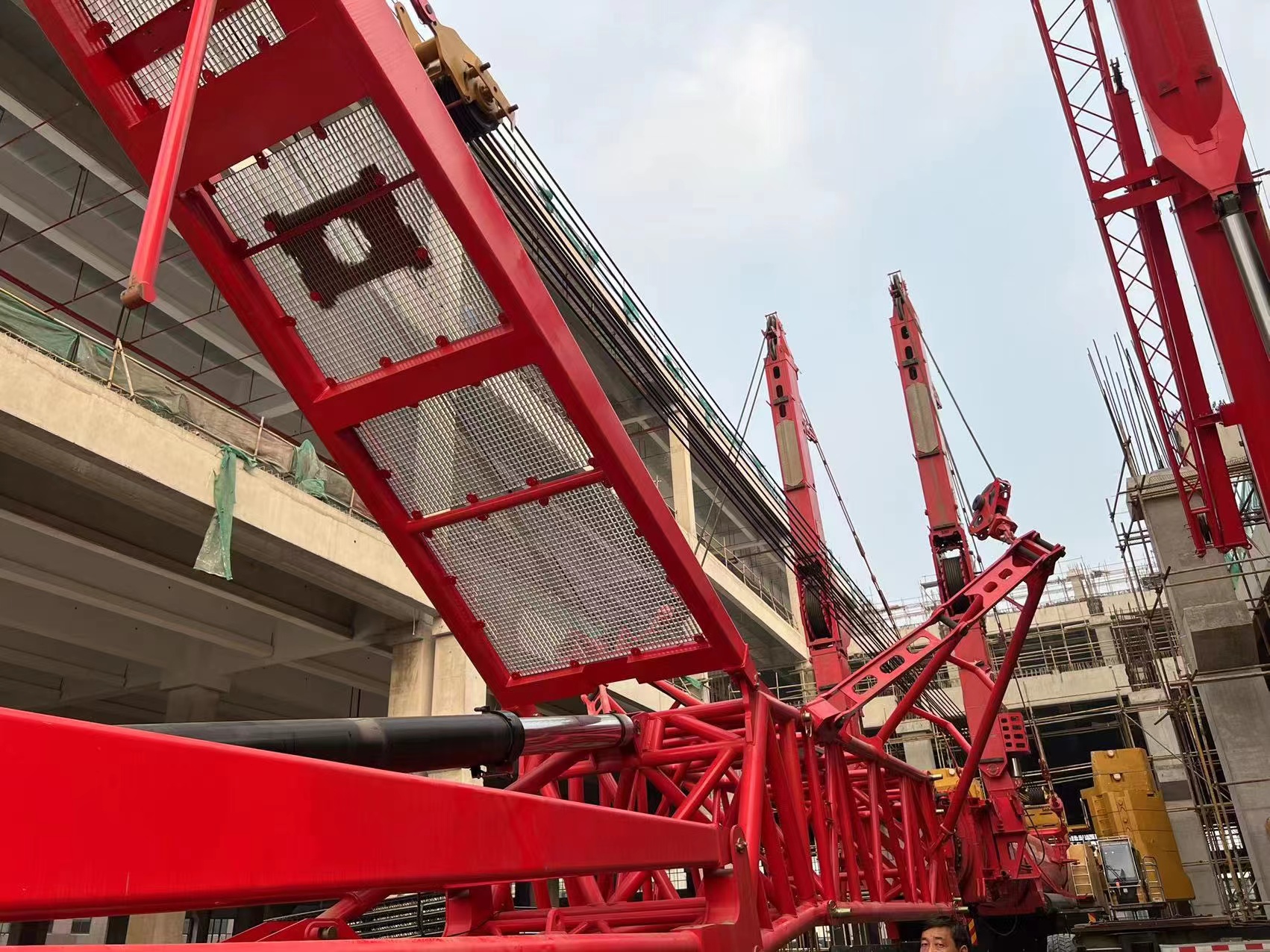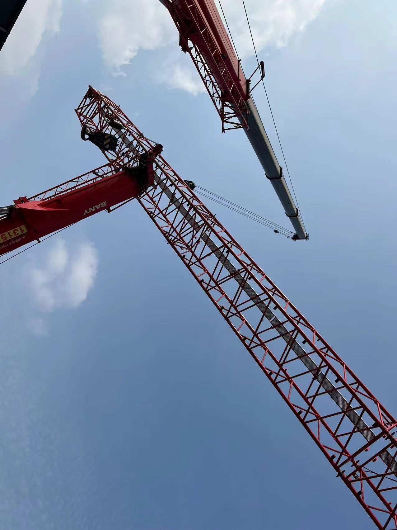钢梁安装需要将近十天,当时工期已十分紧张。因此,杨海兵也不敢贸然应允。但同时,他已积极联系服务技术人员金开华,寻求塔臂安装的解决办法。经过长达两个小时的商讨,他想到:“要是地面不能正常安装,那就在空中对接塔臂。”
