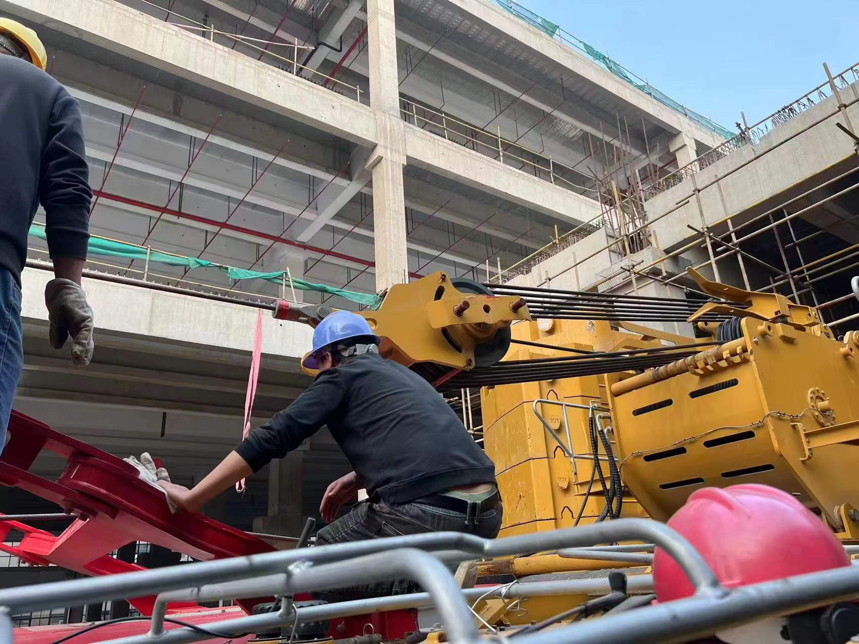敲定作业方案后,这项“不可能的任务”正式启动了,金开华带领着另外两位工程师刘焯、廖水龙一起加入“战斗”,还出动了3台辅吊。第一台辅吊把要加装的塔臂吊在空中;第二台辅吊用来固定塔臂,保持稳定防止抖动;第三台用来确保安装人员安全。项目团队仔细分工,紧盯每一个环节。