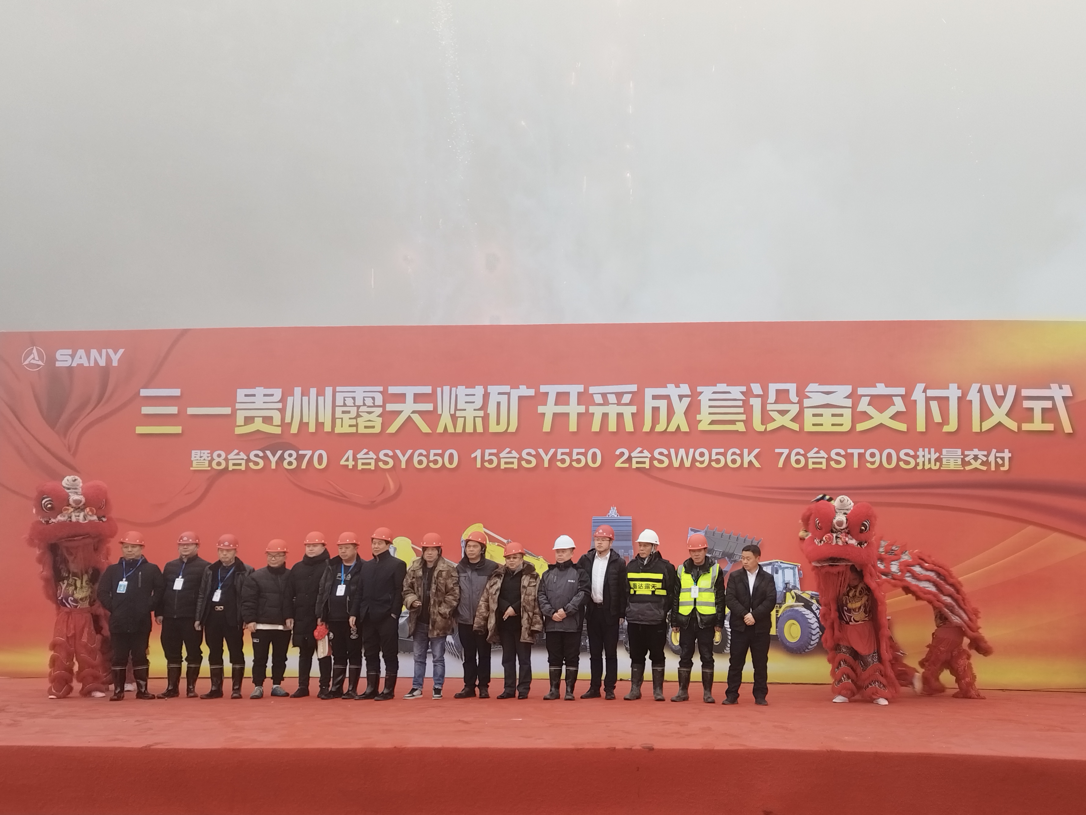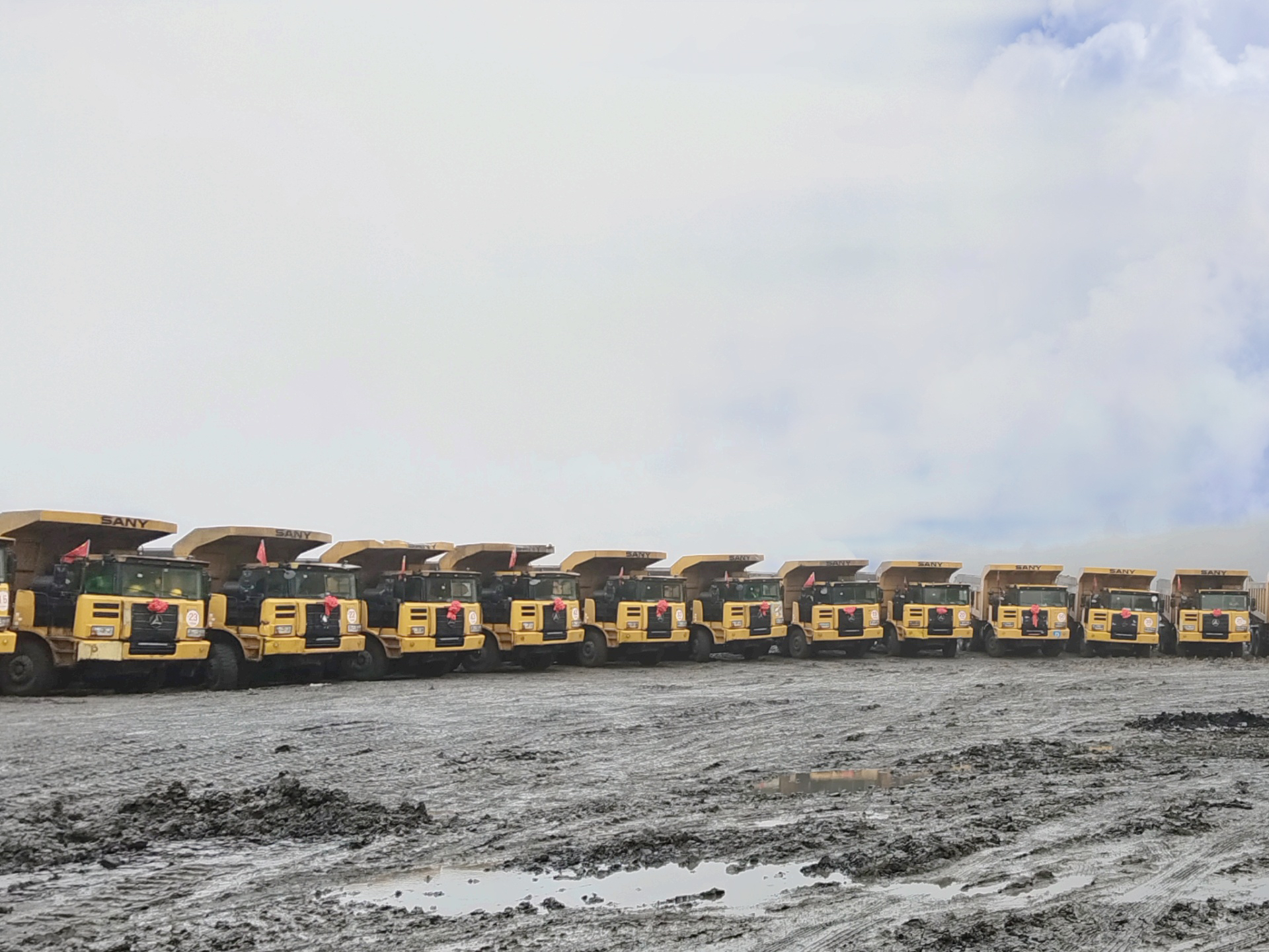 在位于贵州省金沙县的设备交付现场,76台好体育投注网站宽体自卸车围绕着矿区整齐排列,场面十分壮观。