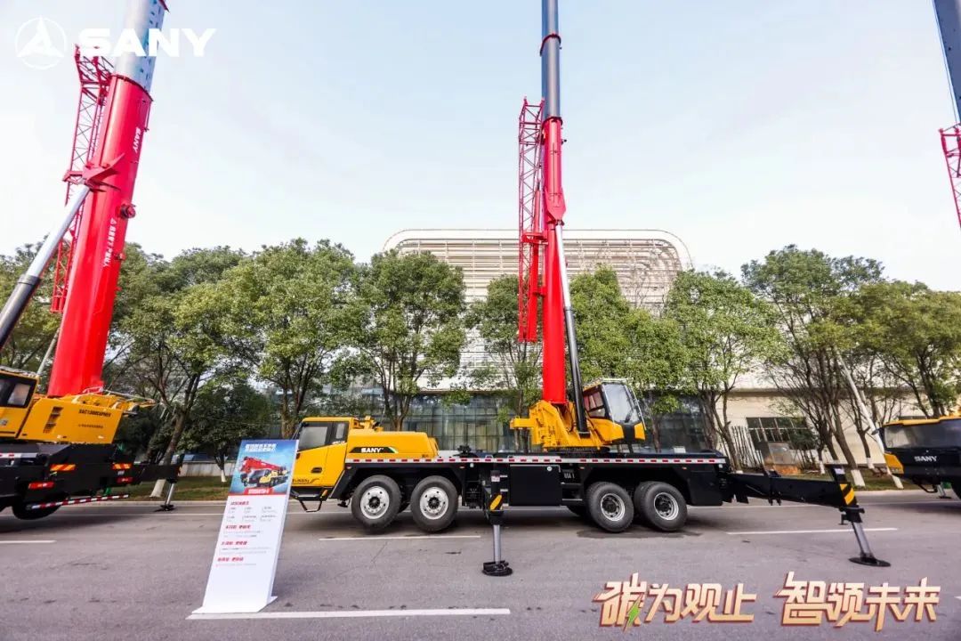 活动现场,从12吨到2400吨,18台轮式起重机组成的钢铁军团霸气十足,气势宏大。其中,全地面起重机6款、汽车起重机6款、新能源起重机6款。面对吊装行业最专业的观众,它们一字排开,悉数亮相,接受检阅。