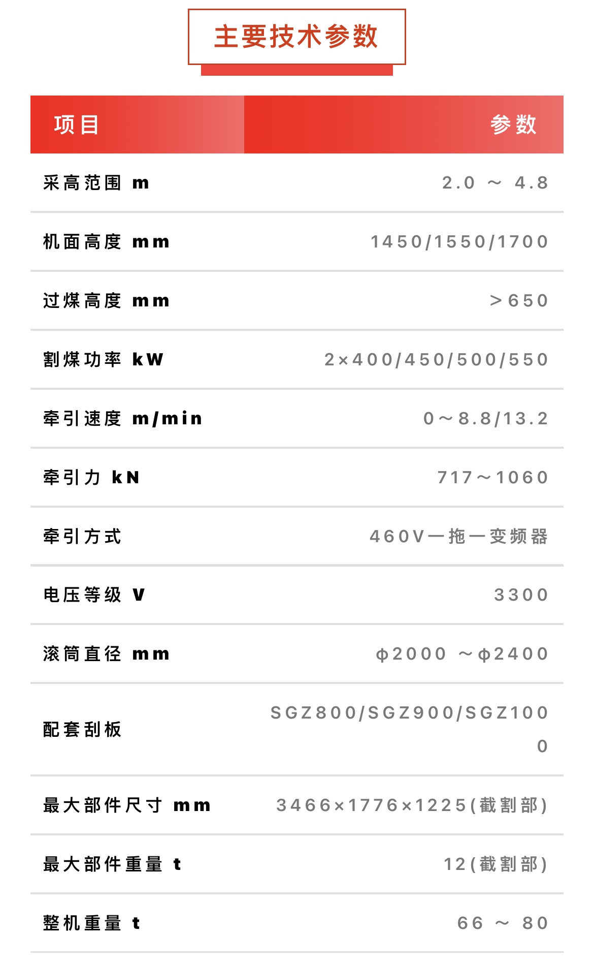 1180系列采煤机主打型号