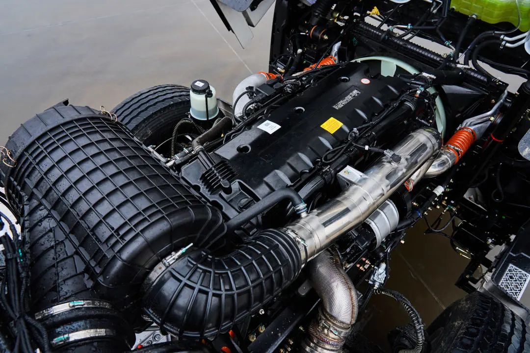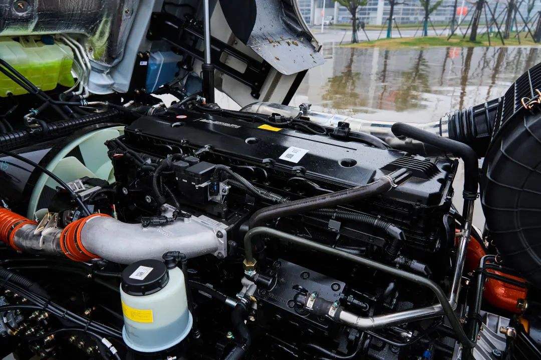 发动机方面,新朱宏旗舰版装配了一台14.5L排量的康明斯M15发动机,最大输出功率为456kW(620马力),峰值扭矩2800牛米。这款发动机采用高爆压、高压缩比的设计,燃烧效果更充分,热效率达到48%。