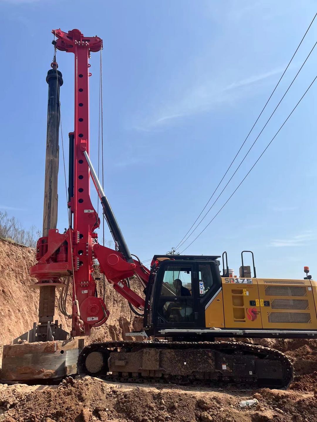此设备施工高度12.9米,运输长度只有11.05米,整机带杆运输高度3.57米,在市内只需要9米的板车就可以实现转场运输且拆卸便捷,有效解决客户山区公路以及电力桩转场频繁的问题,节省运输成本;SR175-S配备φ377-4*8.4机锁杆,可以实现最大钻深30米。有效满足客户后续支护桩、厂房桩等施工要求。客户对于SR175-S低净空定制方案高度认可。