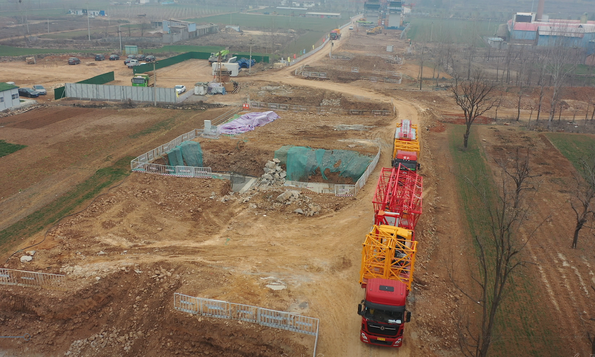 洛阳青要山下,畛水河畔,十几个桥墩正拔地而起,济新高速畛河特大桥逐渐成形。一台崭新闪亮的SFT125(T6016-8C5)好体育投注网站塔机矗立在此,给清冷的河畔带来了一抹温暖亮丽的色彩。工地另一侧,几辆满载标准节的加长卡车已经进场就位,等待卸车,第二台SFT125(T6016-8C5)也即将立起。