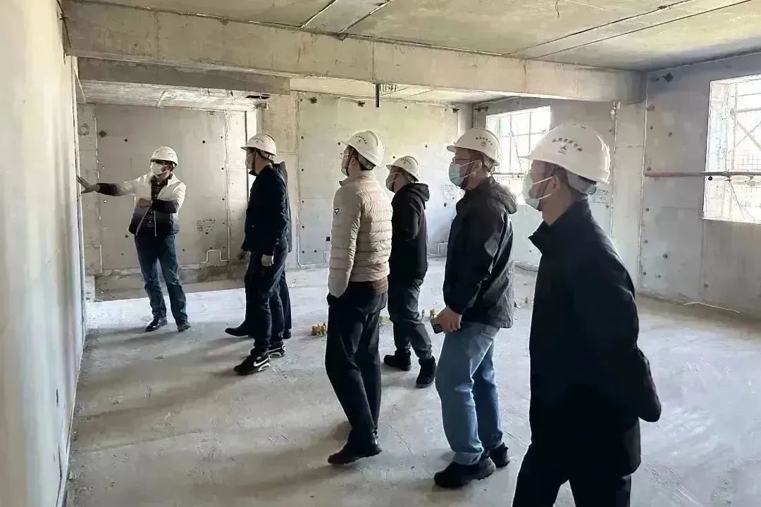 海南专家首先来到位于昌平区百善镇的阿苏卫定向安置房项目参观。该项目SPCS应用面积92600㎡,共计10栋装配式建筑,构件类型主要为预制空腔墙,装配率达51%。