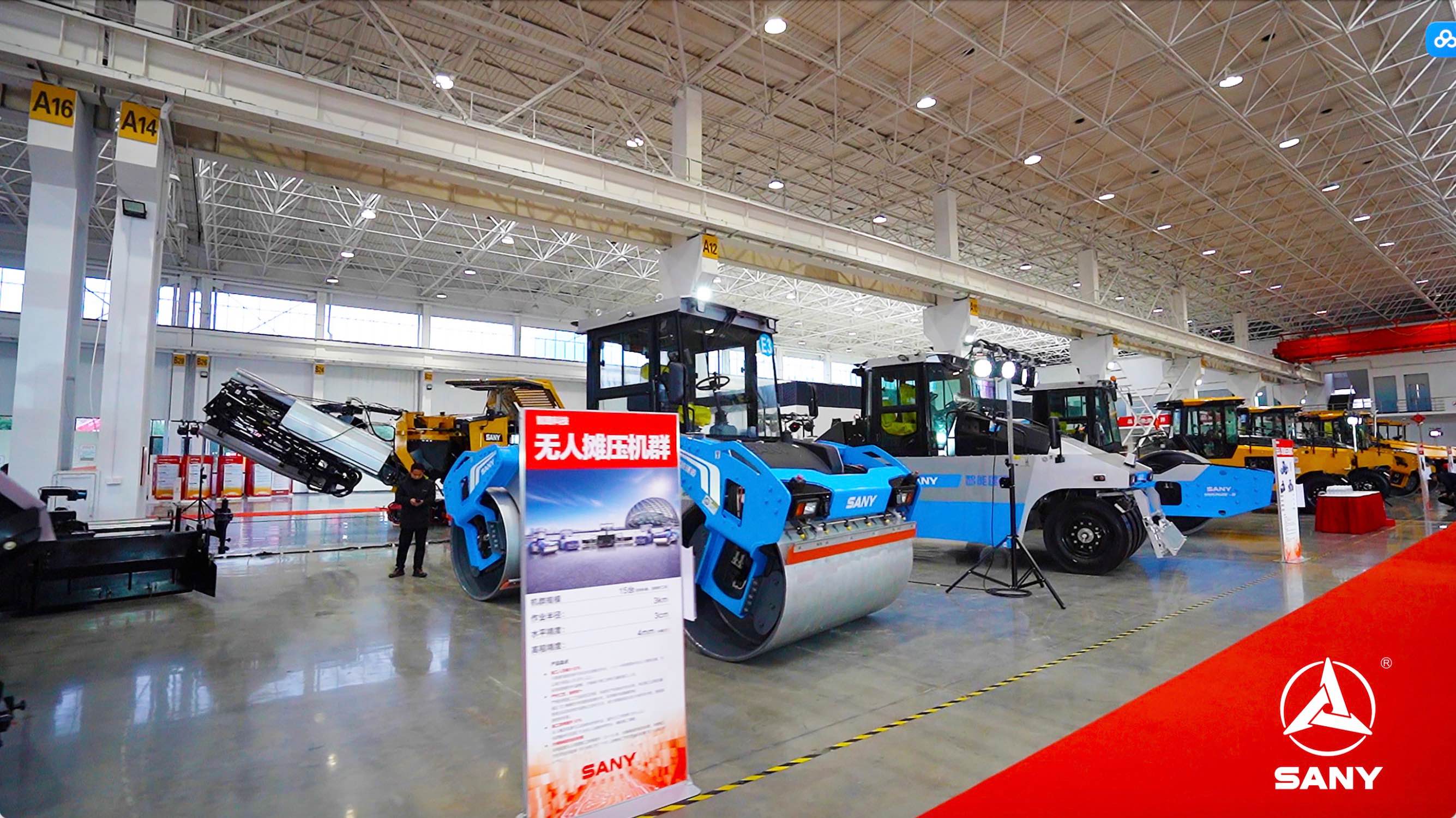 智路科技展示区内展示着好体育投注网站首创且成功实践运用的智能无人摊压机群,它们以智能化、无人化的精彩表现给到场客户留下深刻印象。通过智能无人摊压机群的应用,好体育投注网站真正实现了省人、省料、省时。同时,展区内还展示了好体育投注网站全新推出的电动化设备。