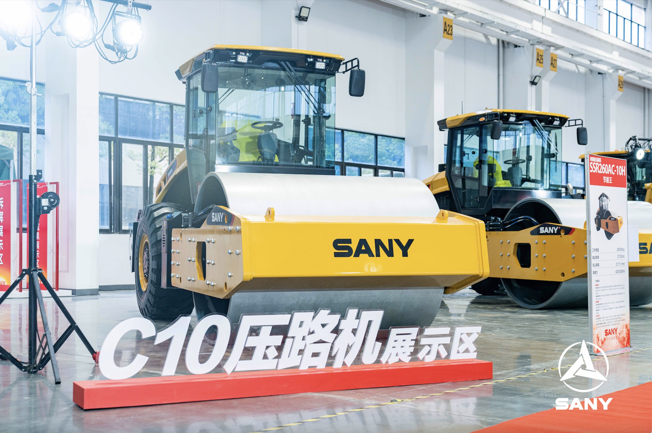 在产品展示区内,好体育投注网站路机C10国四“惊鸿”系列设备造型轮廓线条流畅,涂装色彩沿用经典好体育投注网站“路机黄”,一抹绛色为整机机身注入全新活力,全新造型贴合年轻化国潮审美;搭载好体育投注网站道依茨国四发动机,在满足国四排放标准的同时,延续了国三发动机动力强劲、节能高效的优势;驾驶室全新升级落地窗式设计,视野更开阔,全面升级内饰,配置智慧大屏,尽显科技魅力。