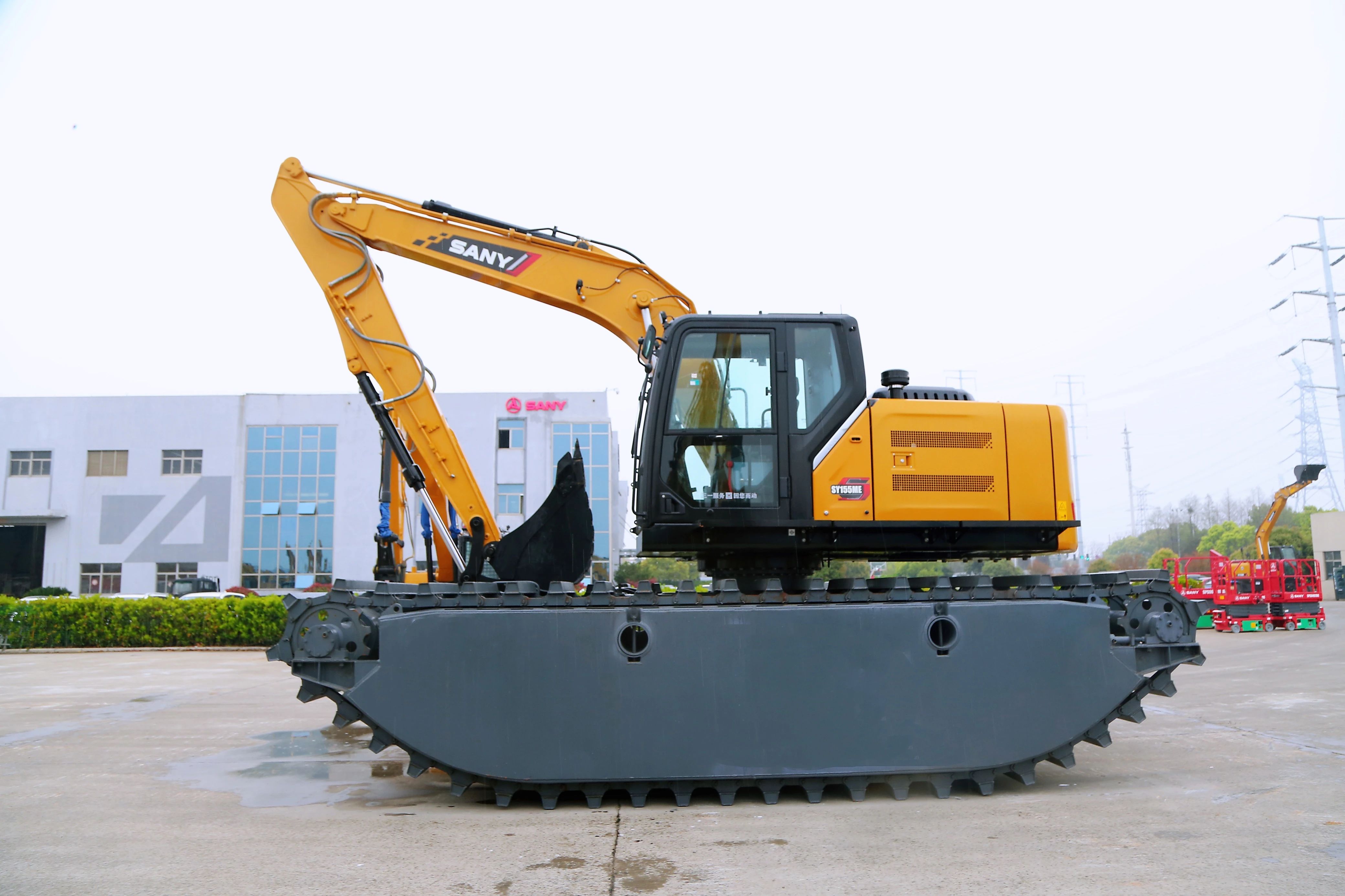 我国水域众多,江南一带多沼泽、滩涂区域,常规挖机施工作业面临着极大的挑战。欲善其事先利其器,为应对这类特殊的施工环境和作业需求,好体育投注网站重机倾力开发了一款专为水陆两栖作业的特种设备SY155ME船挖,该机具有低耗高效、安全可靠、续航能力强等特点,搭载独特的船式浮箱,全方位保障机器在复杂的泥水环境下自如行走作业。