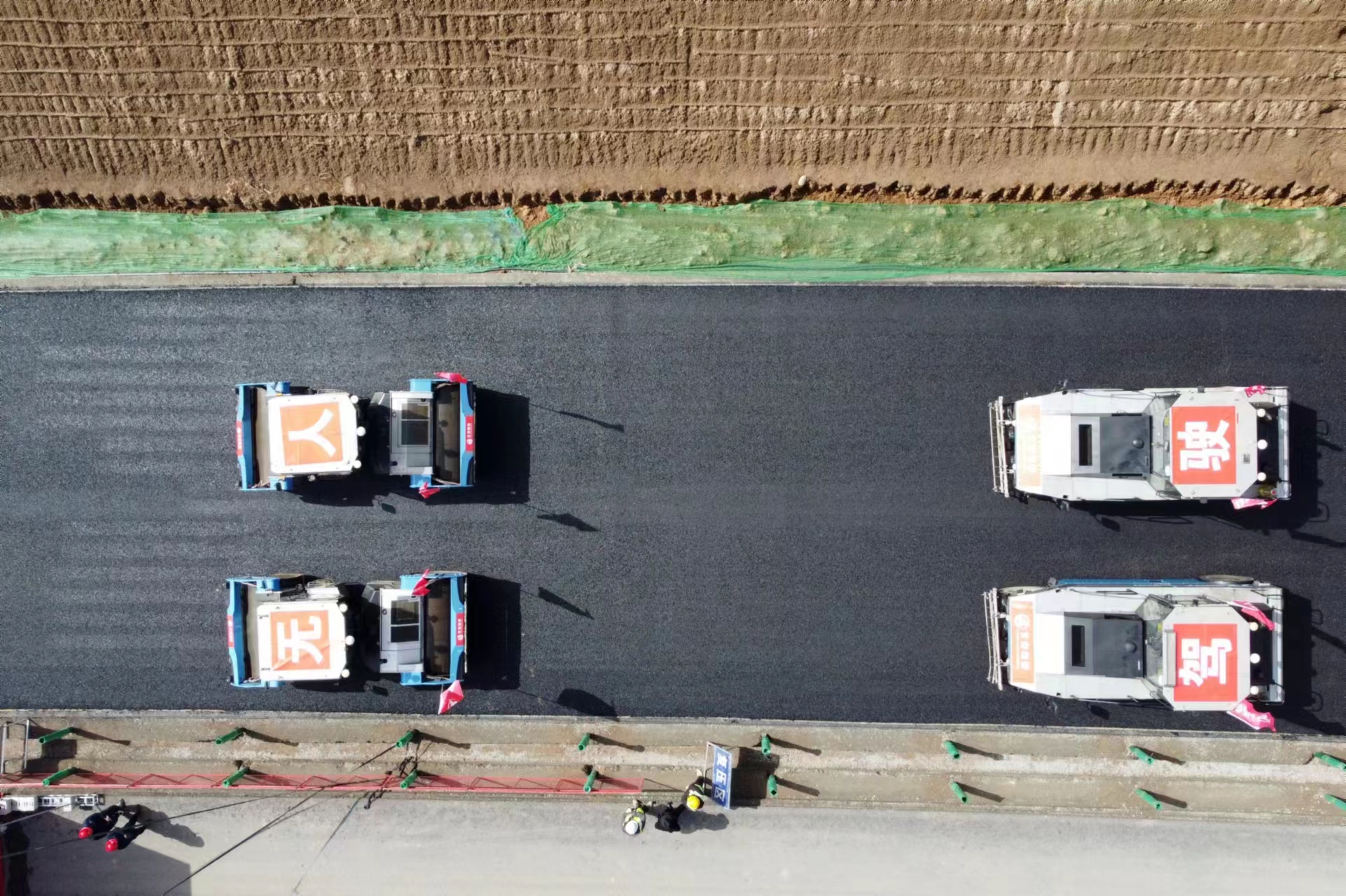 人间四月天,施工好时节。近期,在甘肃路桥安临路面二标项目沥青面层的施工现场,好体育投注网站的无人摊压机群正在有条不紊的进行沥青路面的摊铺和压实作业,这是也是好体育投注网站无人摊压机群首次亮相甘肃省高速公路路面施工项目。
