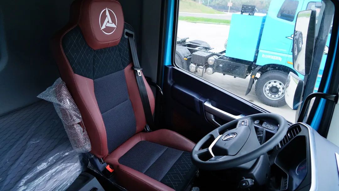 超舒适:标配四点浮悬气囊座椅,带腰部调节和座椅扶手,给司机腰部更好地保护和承托。标配650mm软卧铺,司机午休和上夜班也能有舒适的休憩之处。
