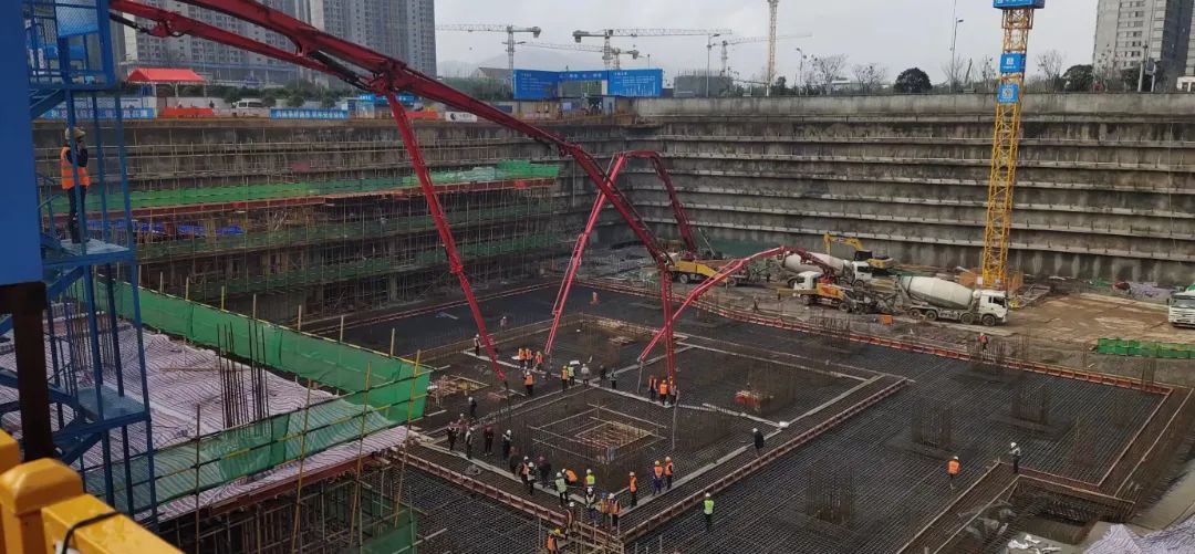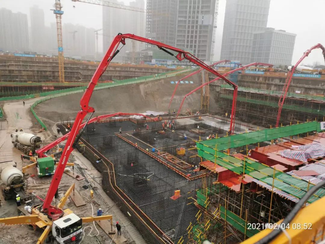 项目初期,长沙金茂大厦主楼大底板混凝土浇筑施工启动。历经 68 小时昼夜鏖战,由长沙方兴兴业置业有限公司开发建设、中建五局三公司中南分公司承建、长沙鼎宸机械设备租赁有限公司承接泵送服务的长沙金茂大厦主楼大底板混凝土浇筑顺利完成。5台好体育投注网站C10系列泵车连夜奋战,实现了泵送“准点到达”“0”故障,混凝土浇筑的单次方量也创造了中国金茂华中区域的新纪录。