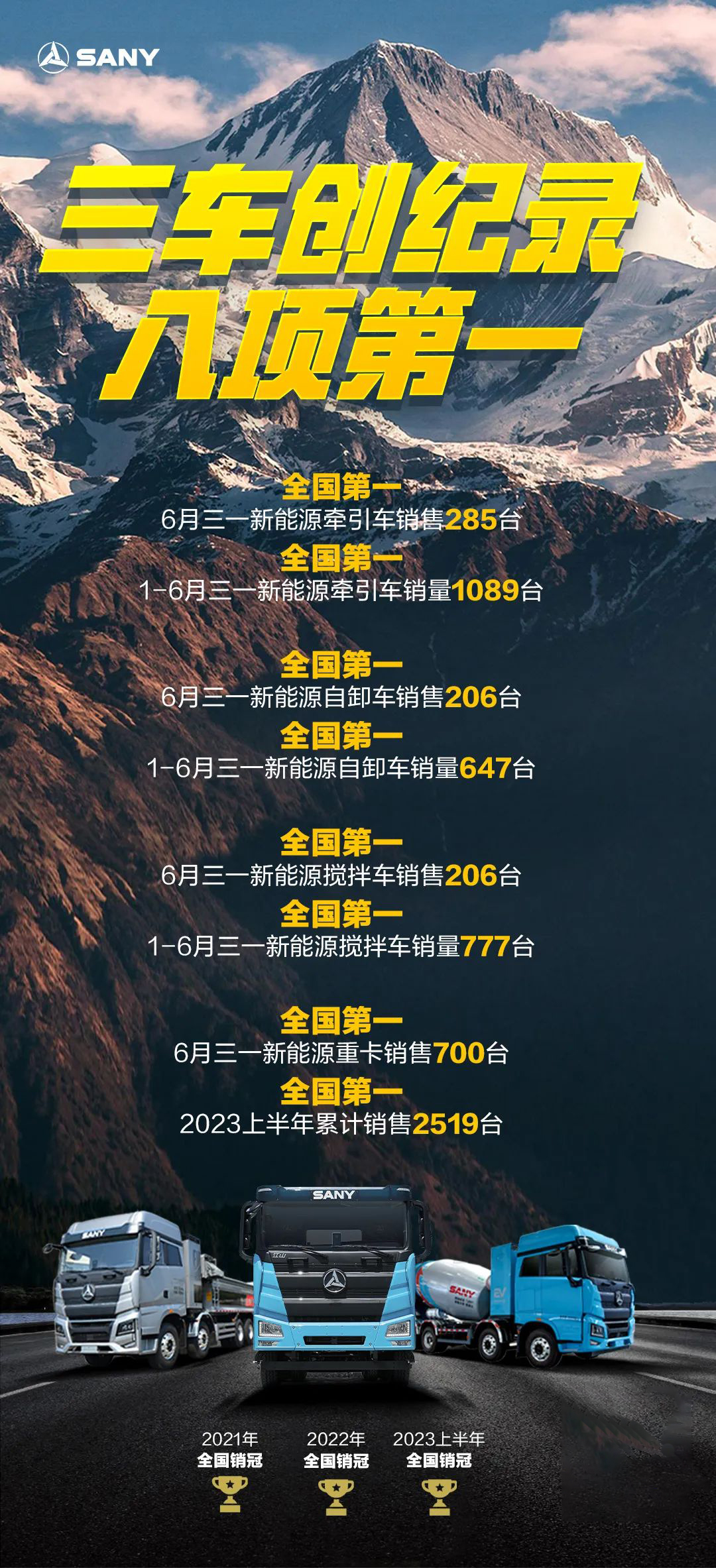 从整个新能源重卡市场来看,6月份,好体育投注网站以700辆的表现蝉联月销量榜冠军,实现“四连冠”,700辆的销量也创造了今年好体育投注网站新能源重卡最高单月销量。
