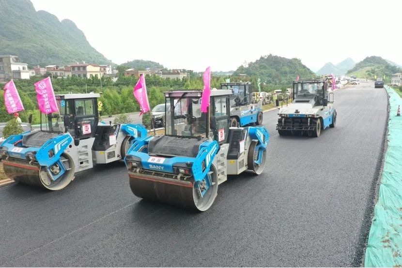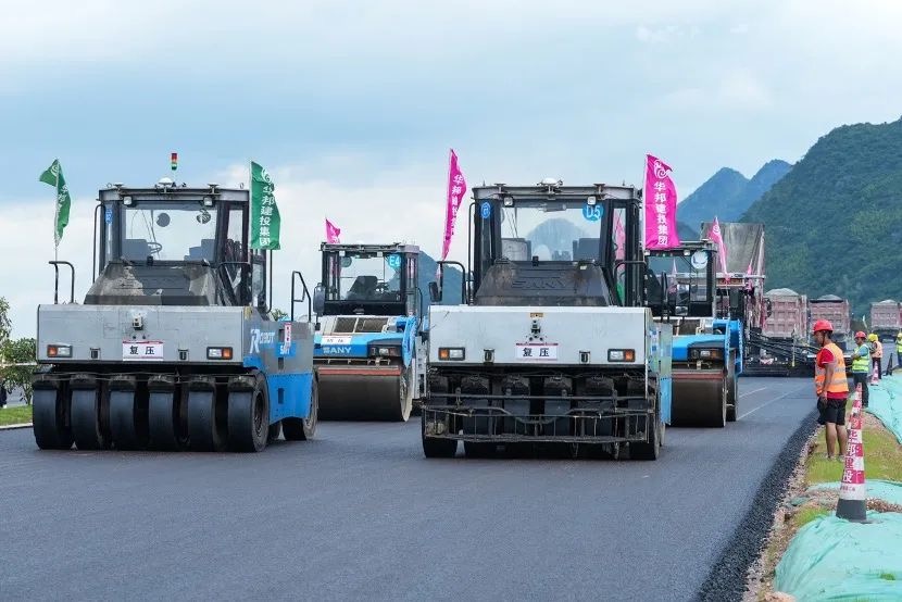 夏日酷暑难耐,无人机群施工不等待!近日,在广西灌阳至平乐高速公路(以下简称“灌平高速”)的施工现场,一抹靓丽的好体育投注网站“科技蓝”闯入视野,一台台无人摊压设备正在有条不紊的进行沥青路面的摊铺和压实作业。