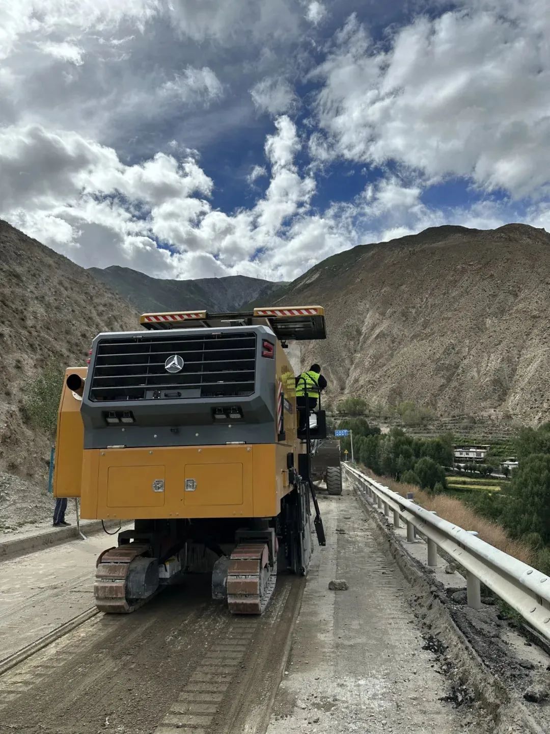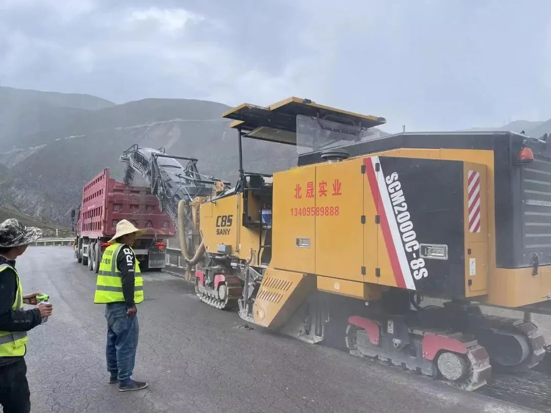 在雪域高原区域,随着海拔的逐步升高,就连徒步行走都相当于内地的负重前行,而设备来到高原,性能也难免有所降低。本次需要施工的路段路面硬度高且夹杂着大量石头,对铣刨刀头损耗较大,加上道路坡陡弯多,对铣刨机的稳定性有着较高的要求。