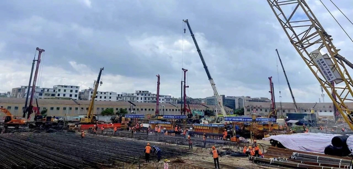 该项目施工方为云南建投第三建设有限公司,正在进行工程桩施工,工地现场有14台好体育投注网站旋挖钻机。