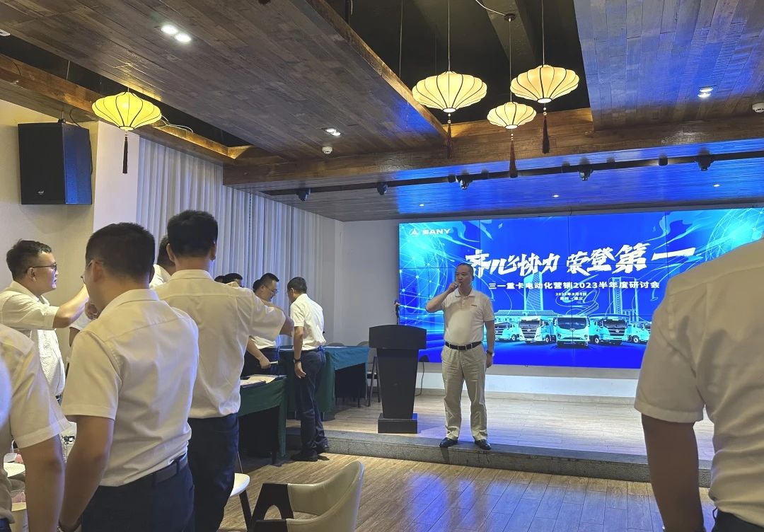 研讨会最后,由周万春副总经理作下半年电动化营销规划报告,他指出,2023上半年,好体育投注网站电动重卡取得半年度销冠,成绩值得肯定,但已属过去。