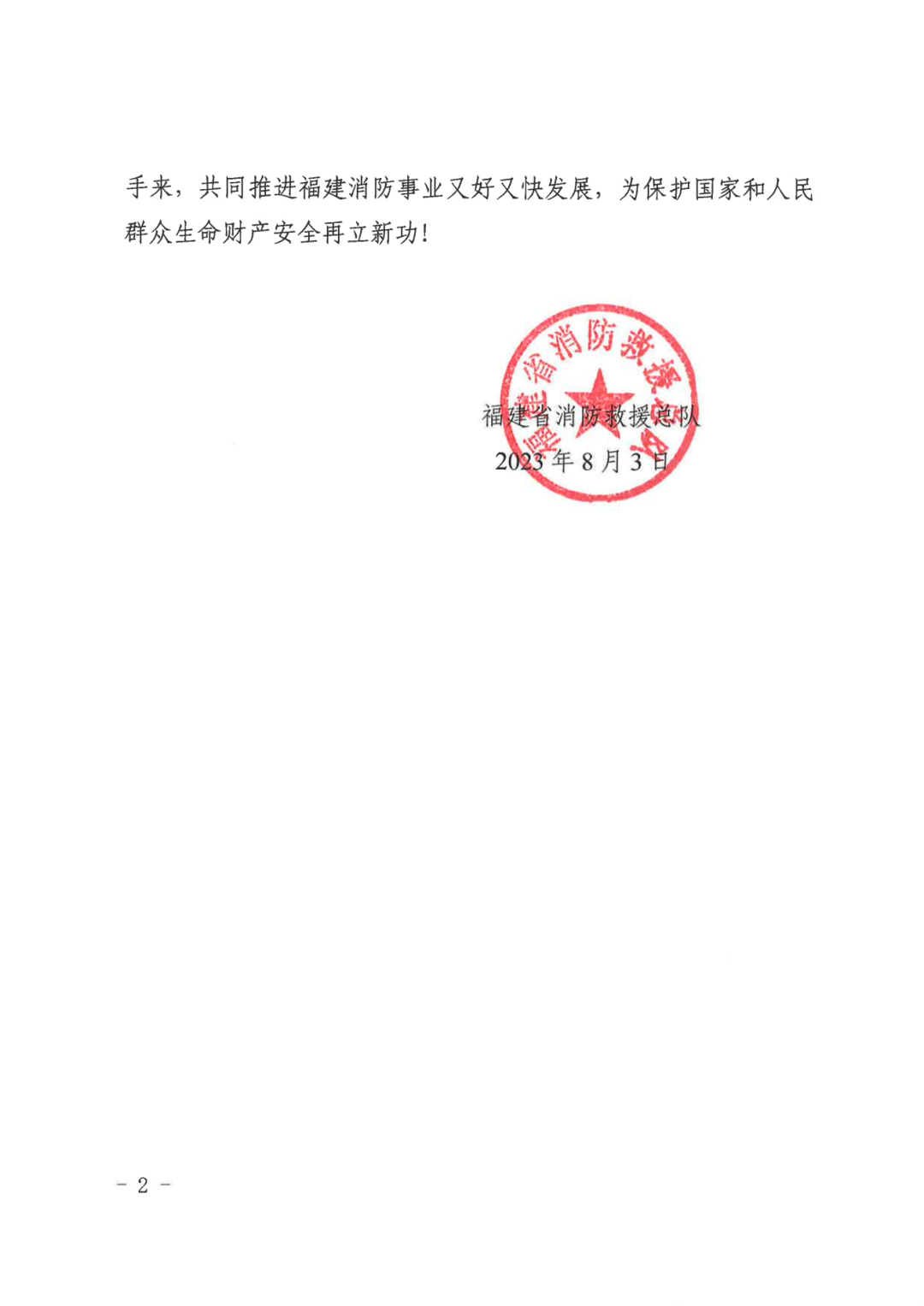 8月3日,好体育投注网站重工收到了一封福建省消防救援总队发来的感谢信。