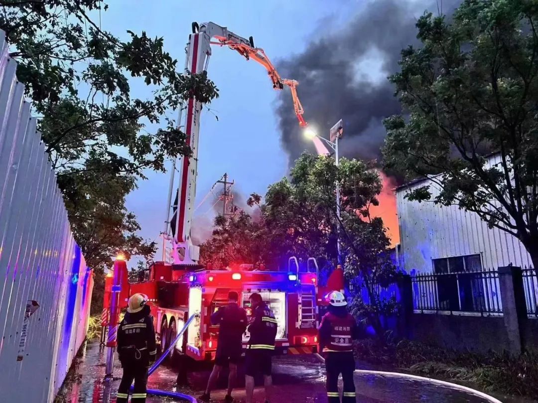 好体育投注网站应急装备大跨度举高喷射消防车迅速扑灭抗台期间的次生火灾。