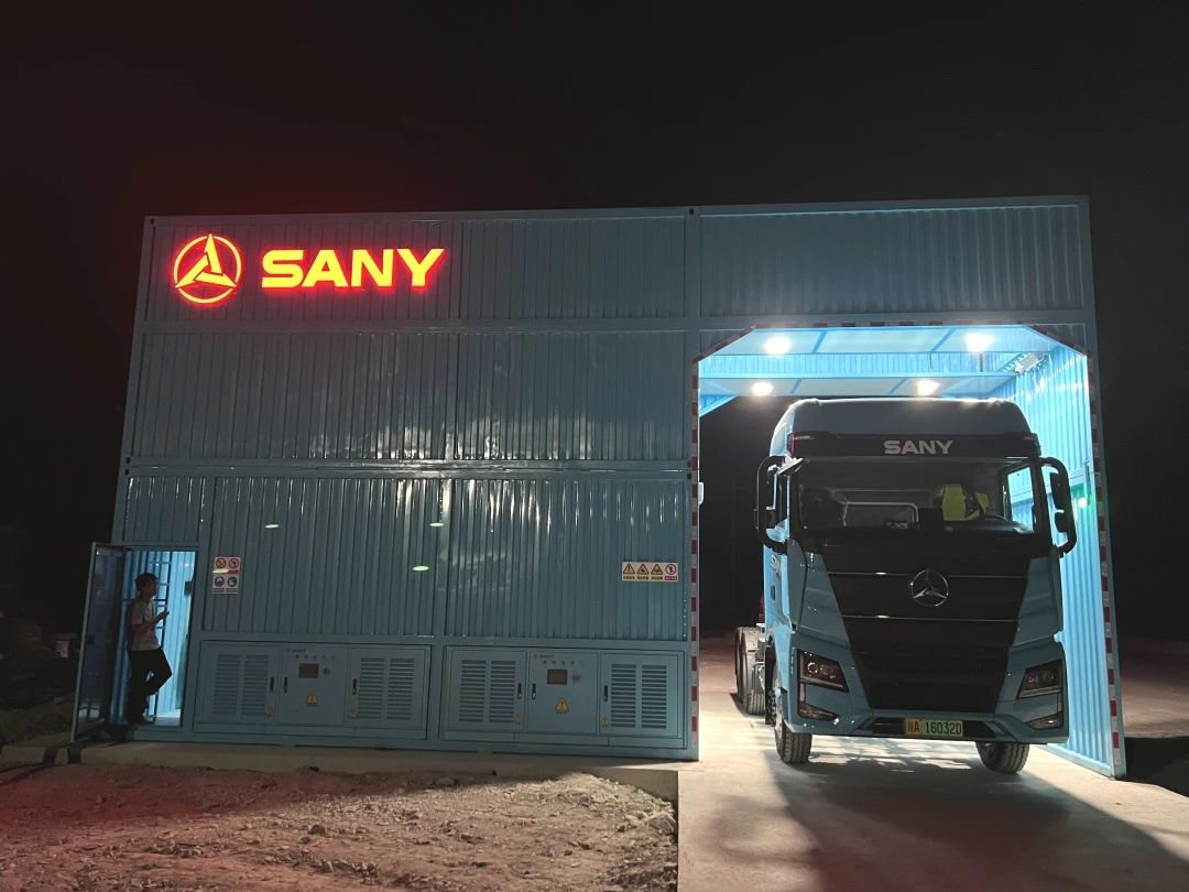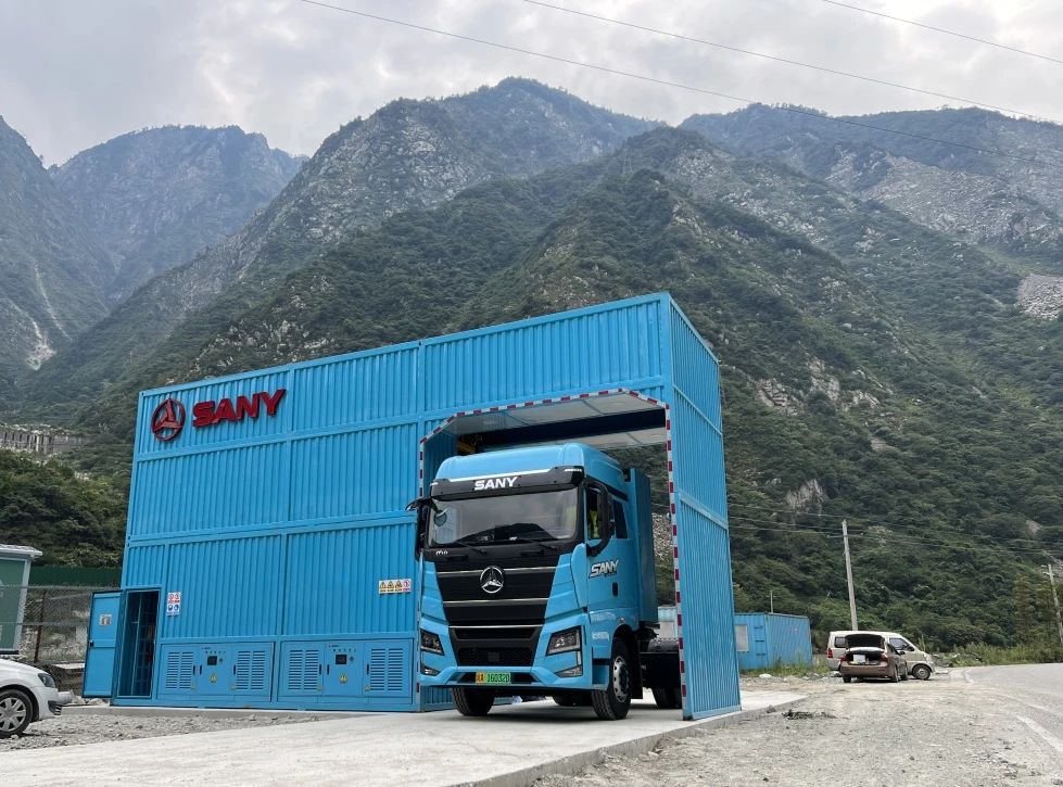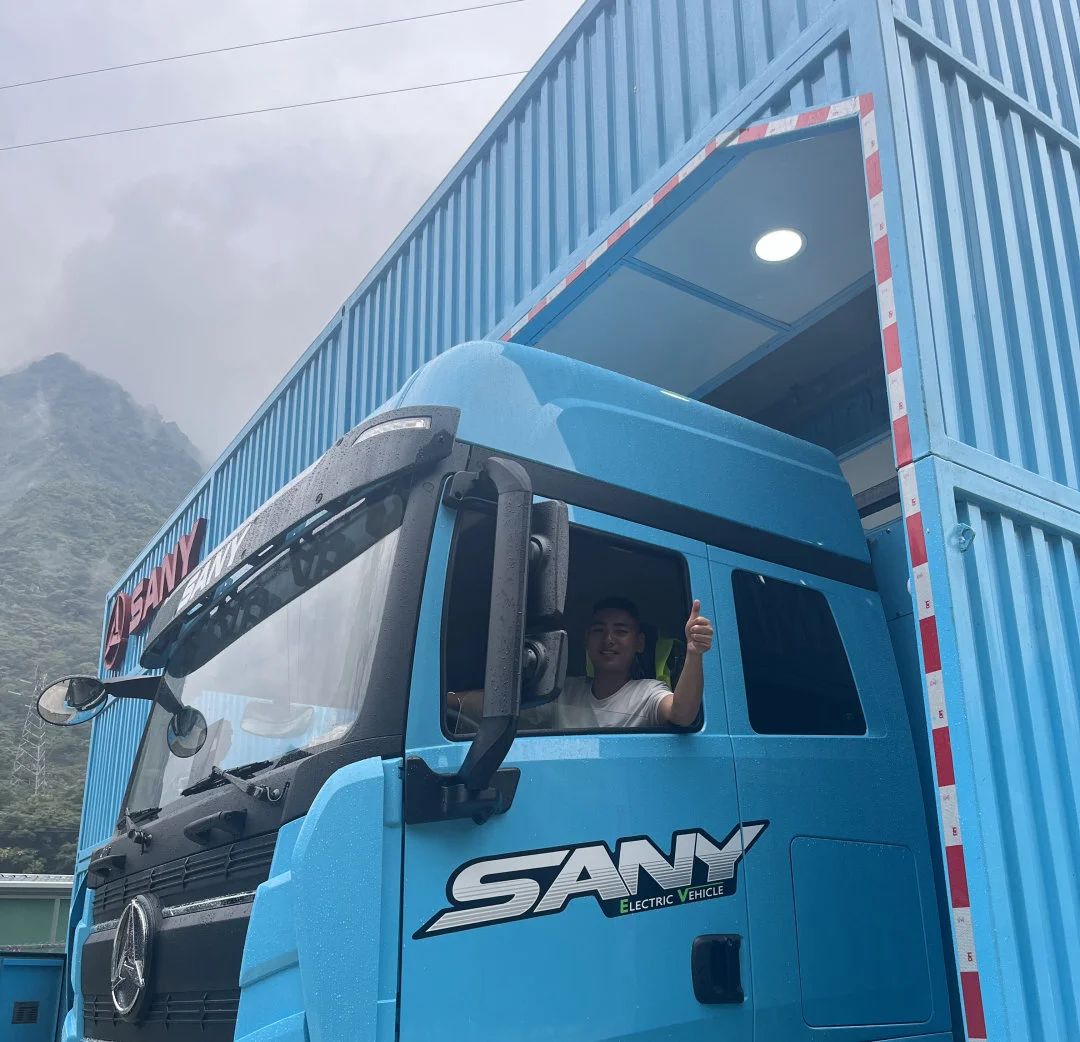 今年7月,积极推进车队绿色运输转型,首批购入10台350度电量的好体育投注网站电动重卡江山EV550,充换电一体,全力服务建筑材料运输。