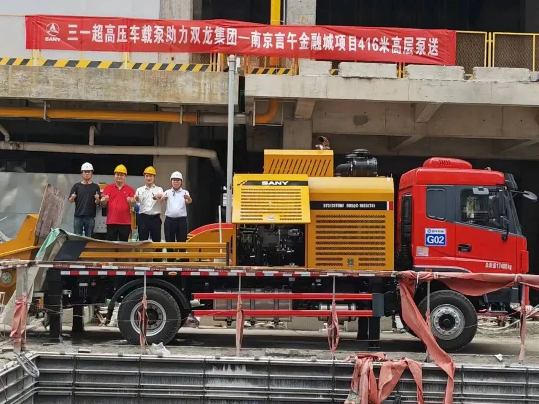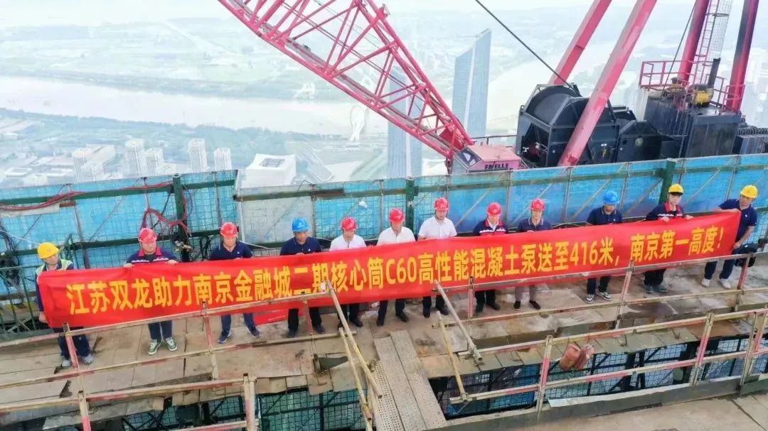 8月27日下午,江苏省南京市金融城二期东区建筑核心筒的混凝土泵送顺利完成,此次由华东材料有限公司旗下双龙集团、言午运输联合好体育投注网站重工,率先突破设备和技术限制,系国内首次采用超高压车载泵完成416米的高层泵送。