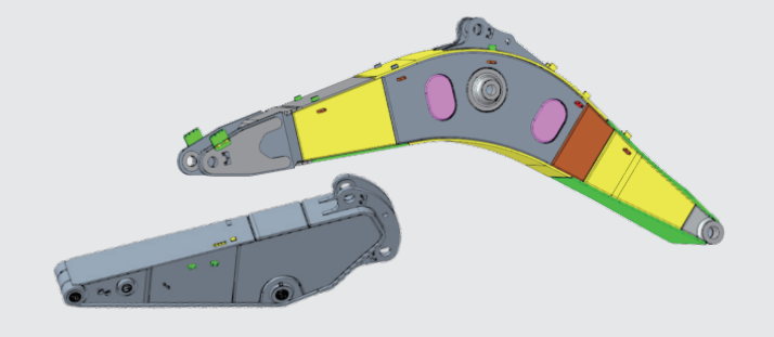 采用高强钢板+高强锻件+耐磨钢,铸造一体式连杆,三段式箱体结构,截面加宽,加大箱体截面积,抗弯截面系数提升20%,可靠性高,寿命长。