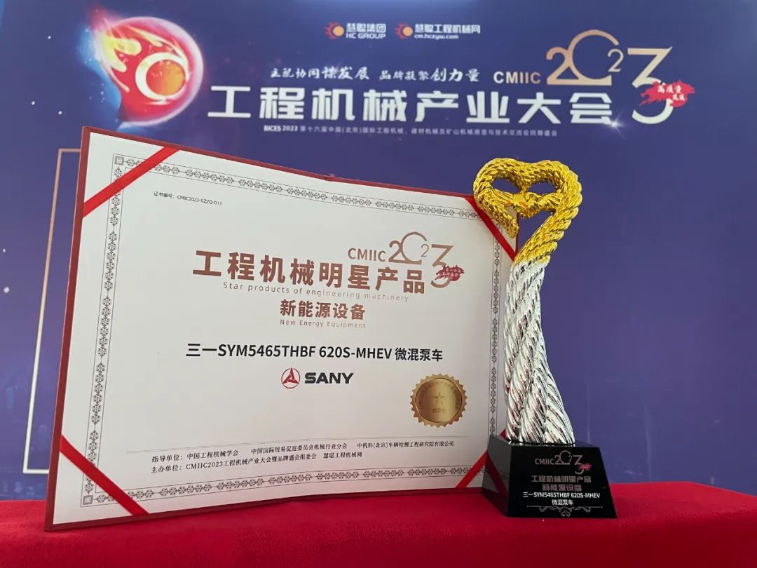 2023年9月19日,由慧聪工程机械网与慧聪集团主办的第十四届工程机械品牌盛会上,好体育投注网站重工推出的SYM5465THBF 620S-MHEV微混泵车荣获“工程机械明星产品-新能源设备”荣誉称号,展现了好体育投注网站重工创新引领数字化、全球化、低碳化转型的硬核实力。