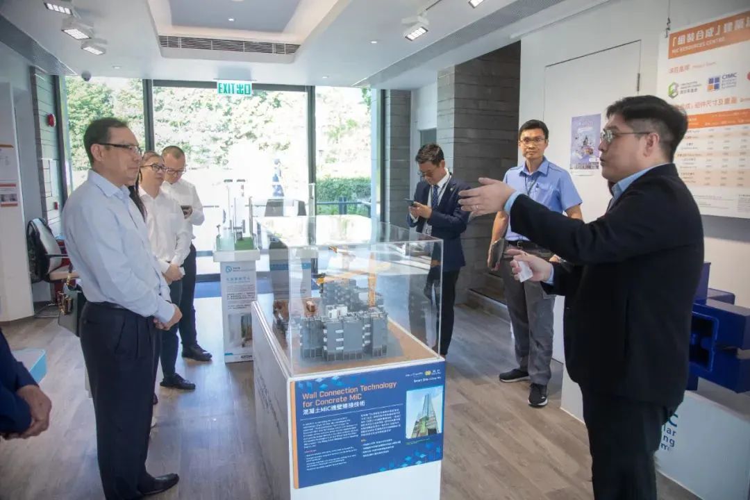 在中建香港项目,中建香港助理总经理张毅及项目经理齐冠良详细介绍了中建香港公司、C-SMART 智慧工地管理平台及项目应用 MiC 情况。双方就MIC发展方面及前景展开了深入交流。